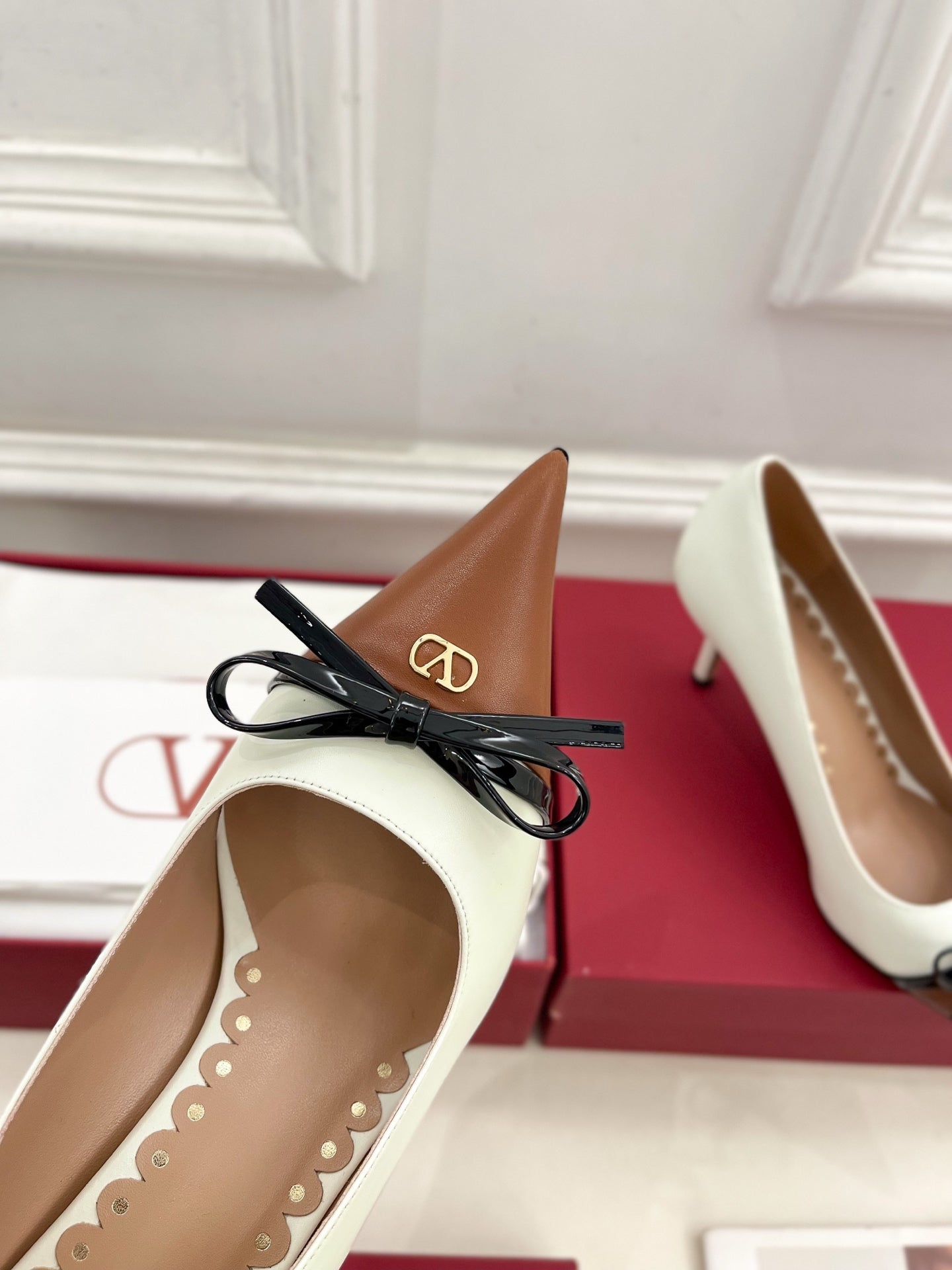 VT 25 Bepointy Pump 4.5cm White Brown Lambskin 325524