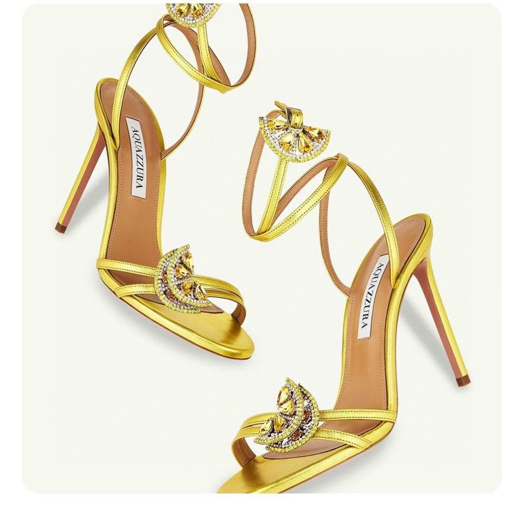 Aquazzura Slingback Heel 10cm Gold Metalic Calfskin