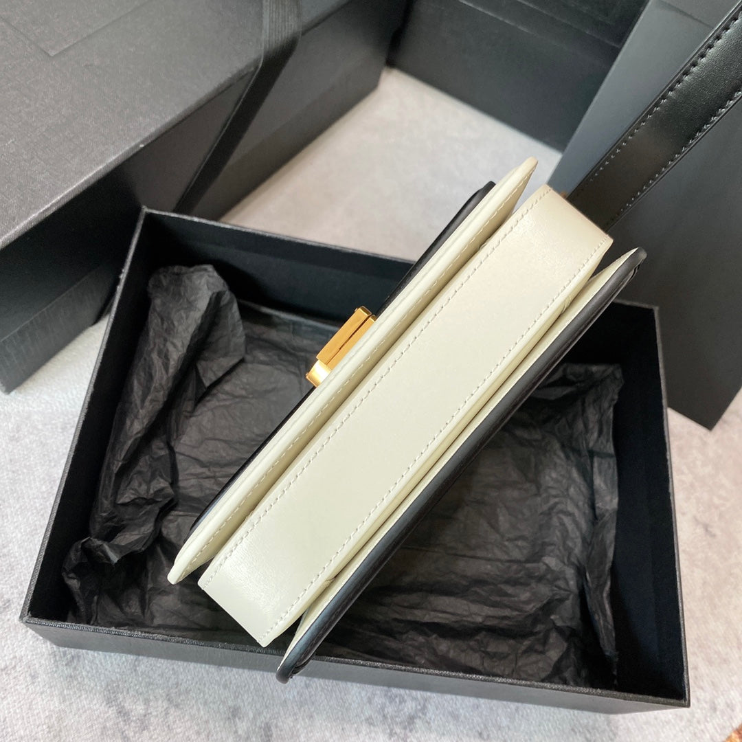 SOLFERINO SMALL SATCHEL 19 IN BLACK MIX WHITE CALFSKIN GOLD LOGO