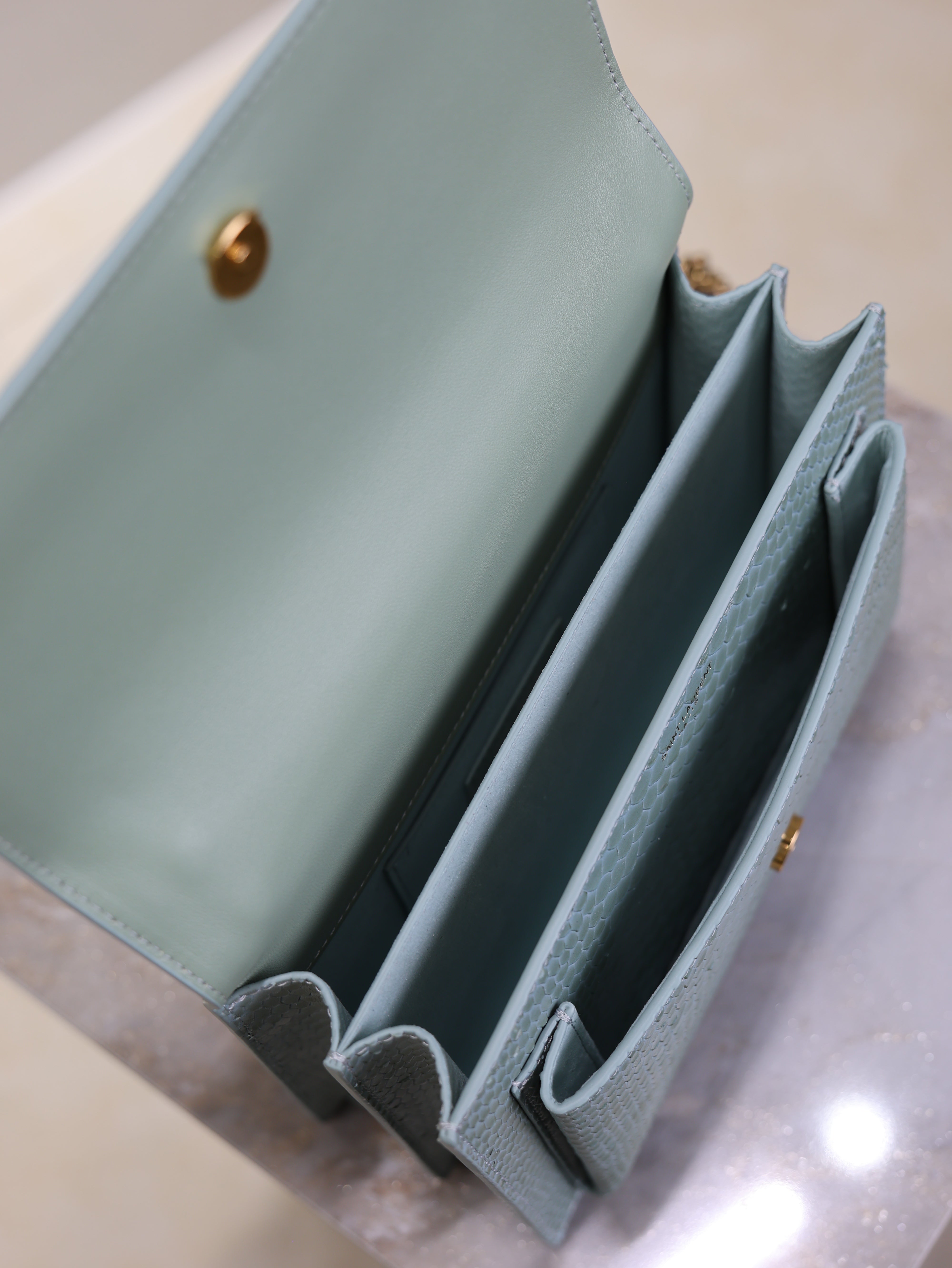 YSL Medium Sunset Shoulder Bag 22cm Grayish Blue Python Pattern Leather