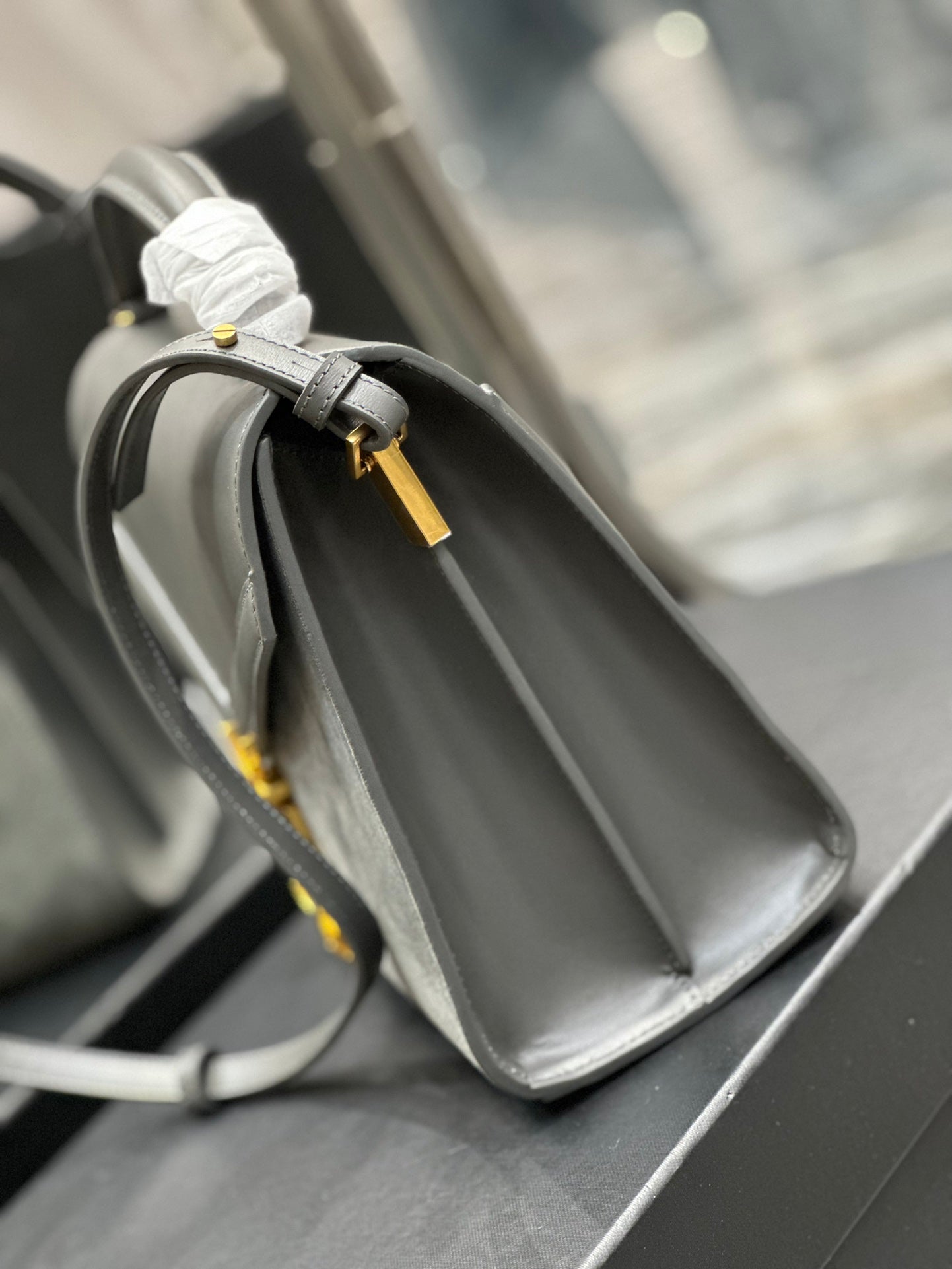 YSL SMALL 23CM MANON BEIGE RAFFIA TAN CALFSKIN