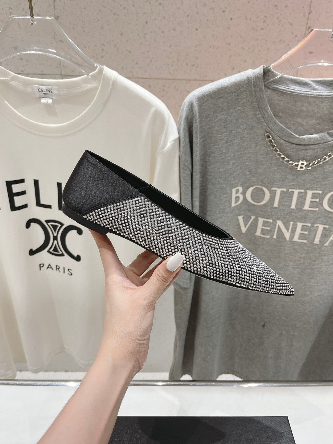 SL NOUR POINTED TOE BALLET BLACK SATIN