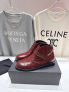 YSL 2025 Brogue Chelsea Ankle Boots Loafer Burgundy Cowhide 567585