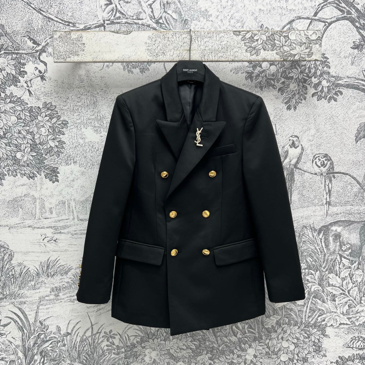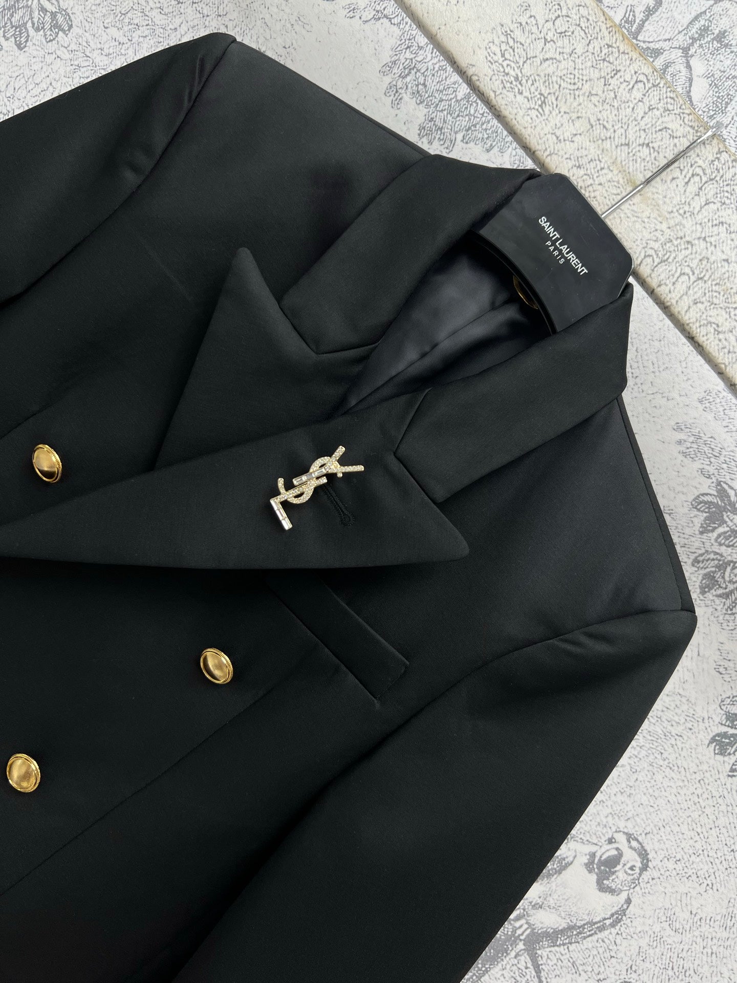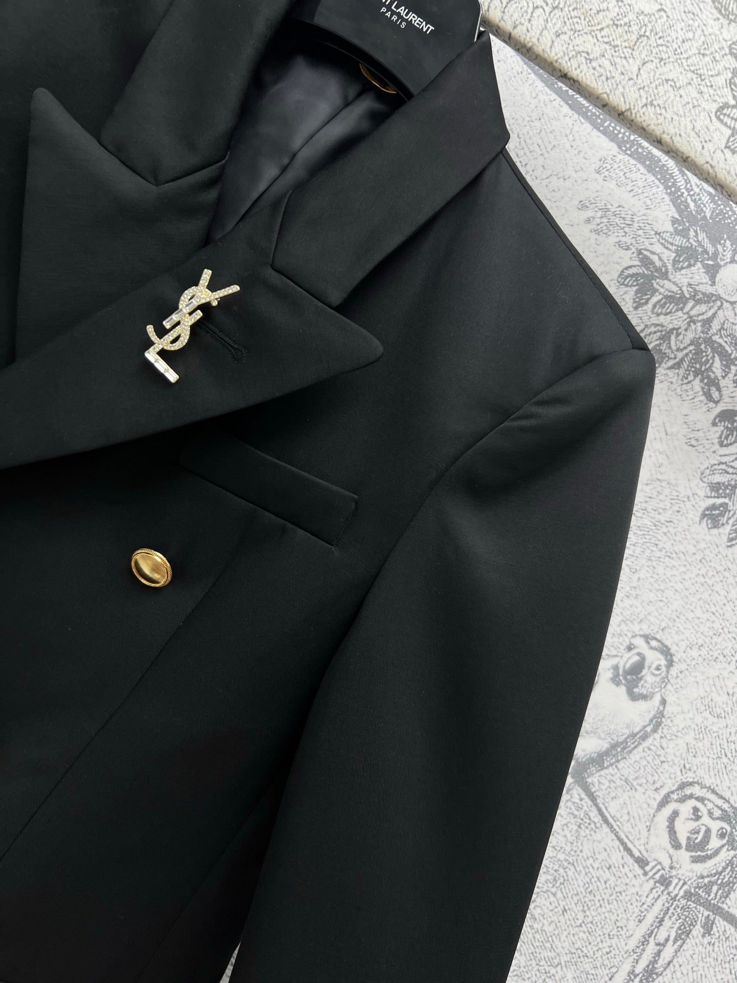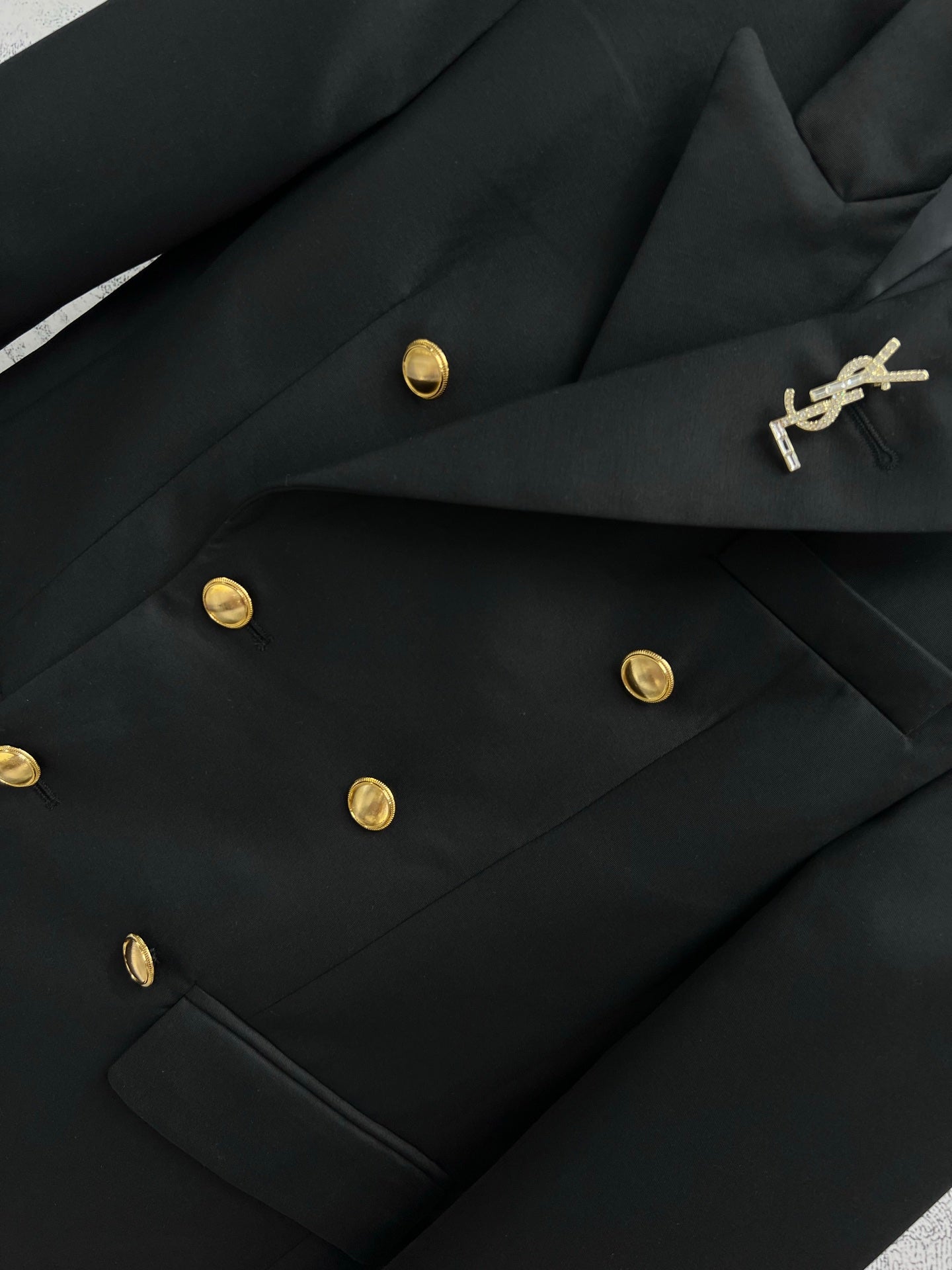 YSL 25 Double-breasted Suit Jacket Black Cotton Polyester