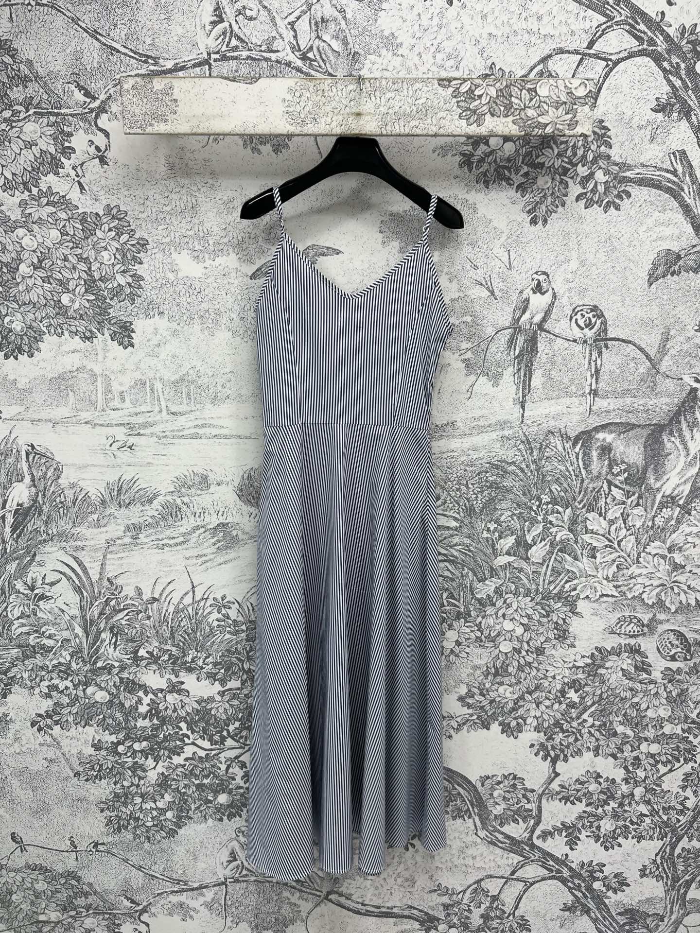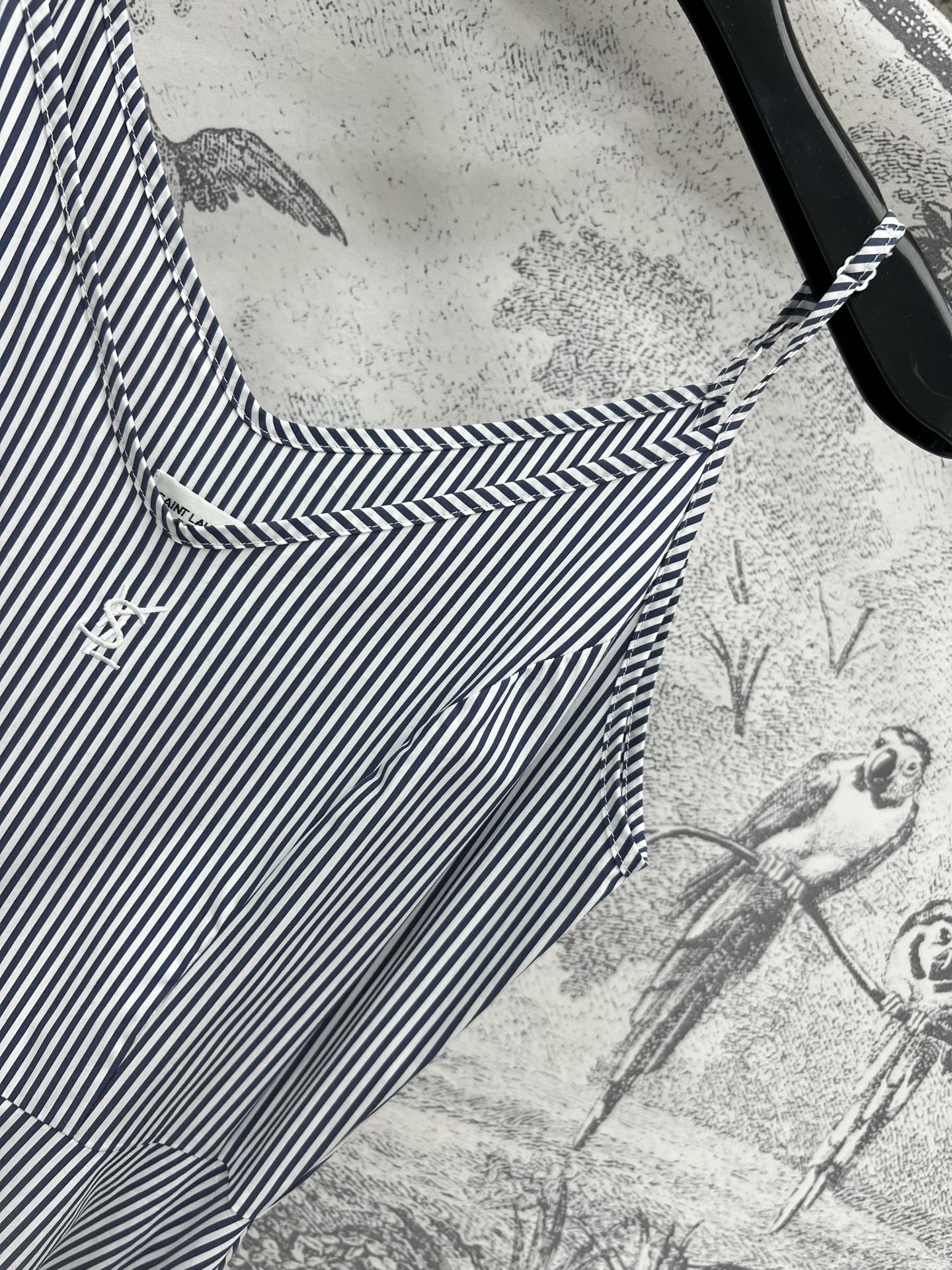 YSL 25 Suspender Striped Dress Blue mix White Cotton