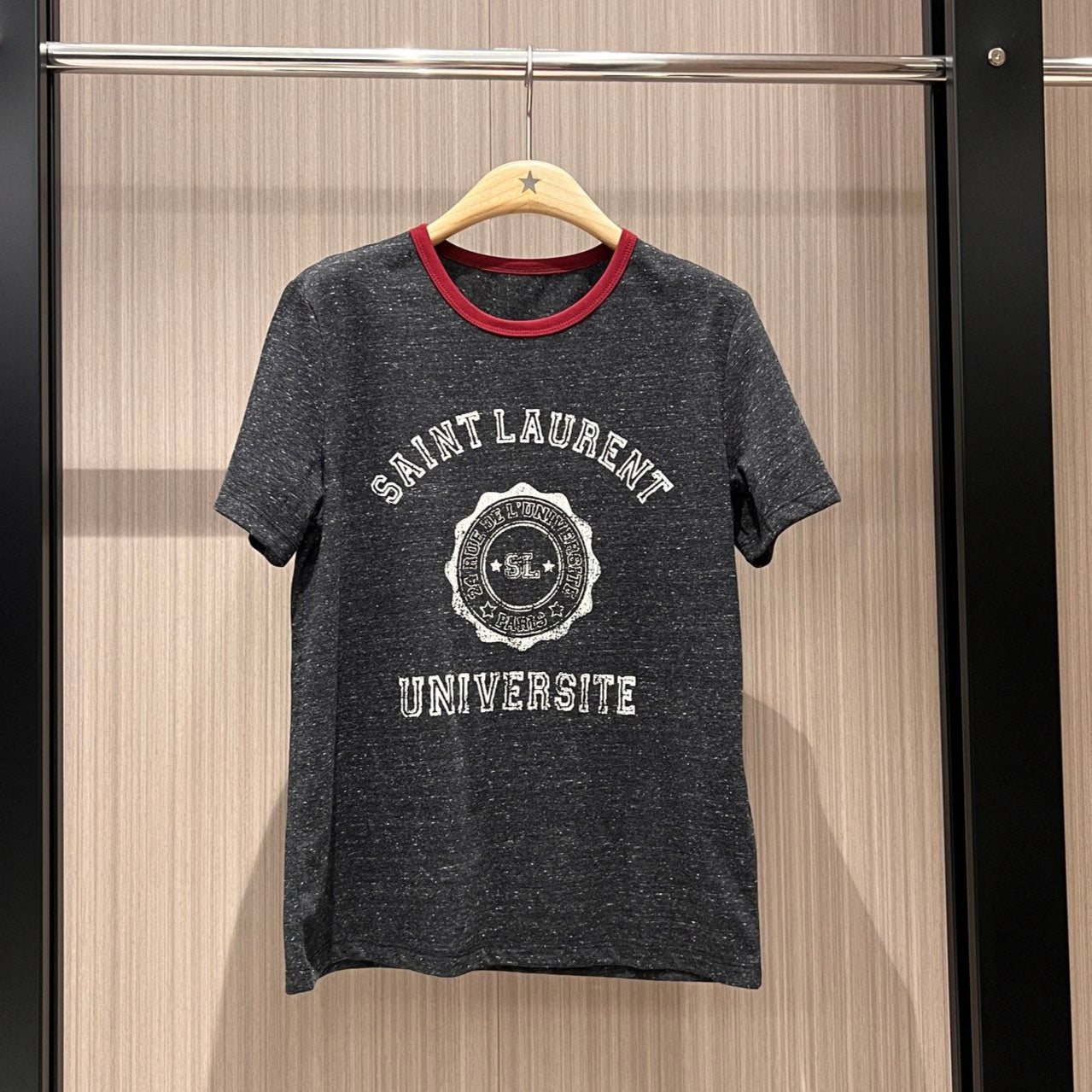 YSL Red Collar Logo Badge T-shirt Gray Cotton