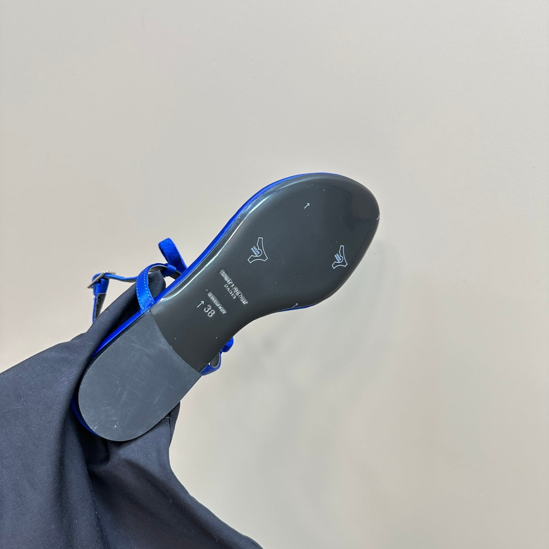 SL CRYSTAL T-STRAP FLAT SANDAL COBALT SATIN