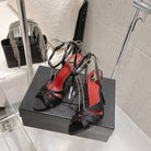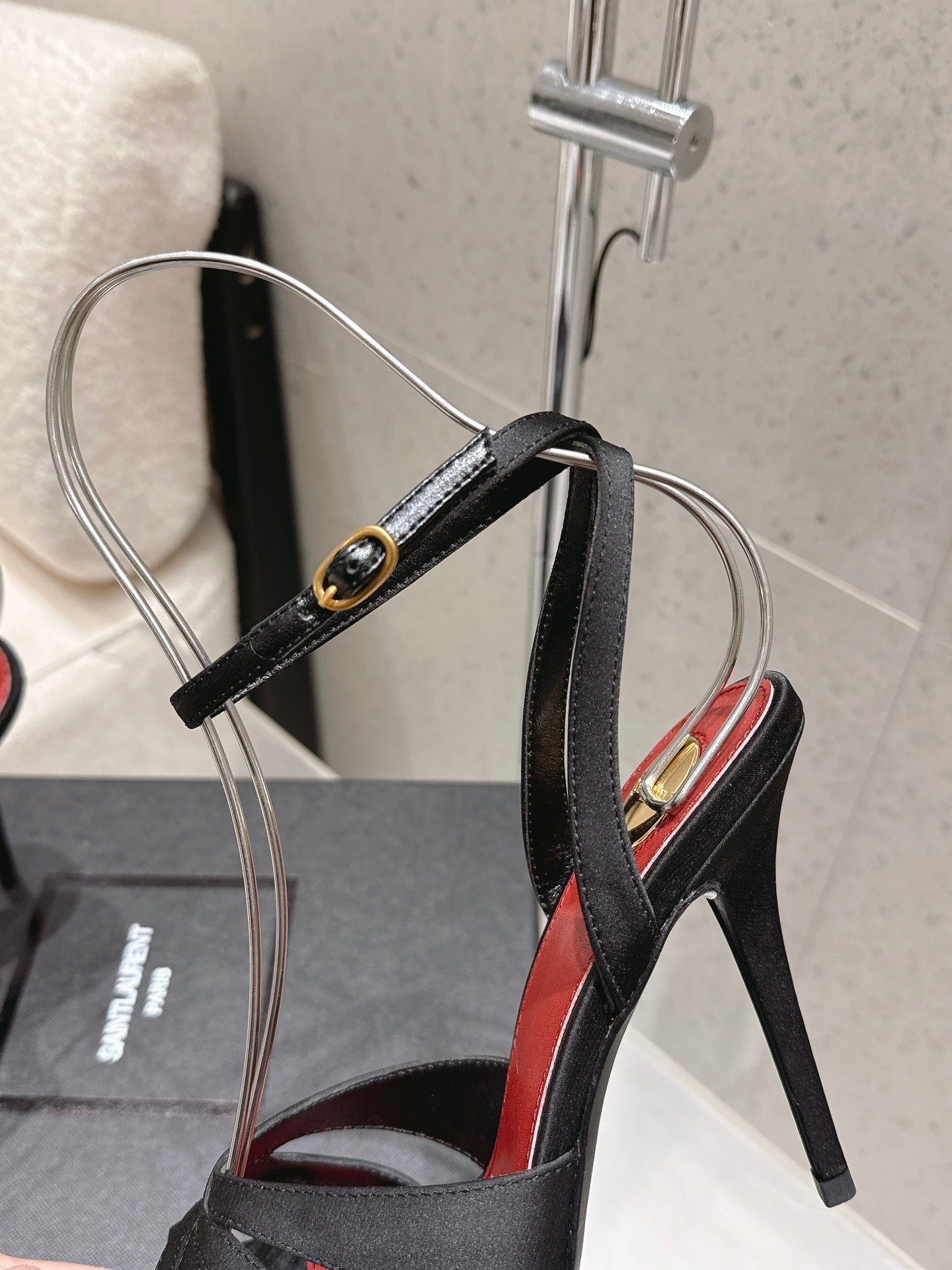 YSL Chandelle Sandals 10.5 Black Red Satin 610694