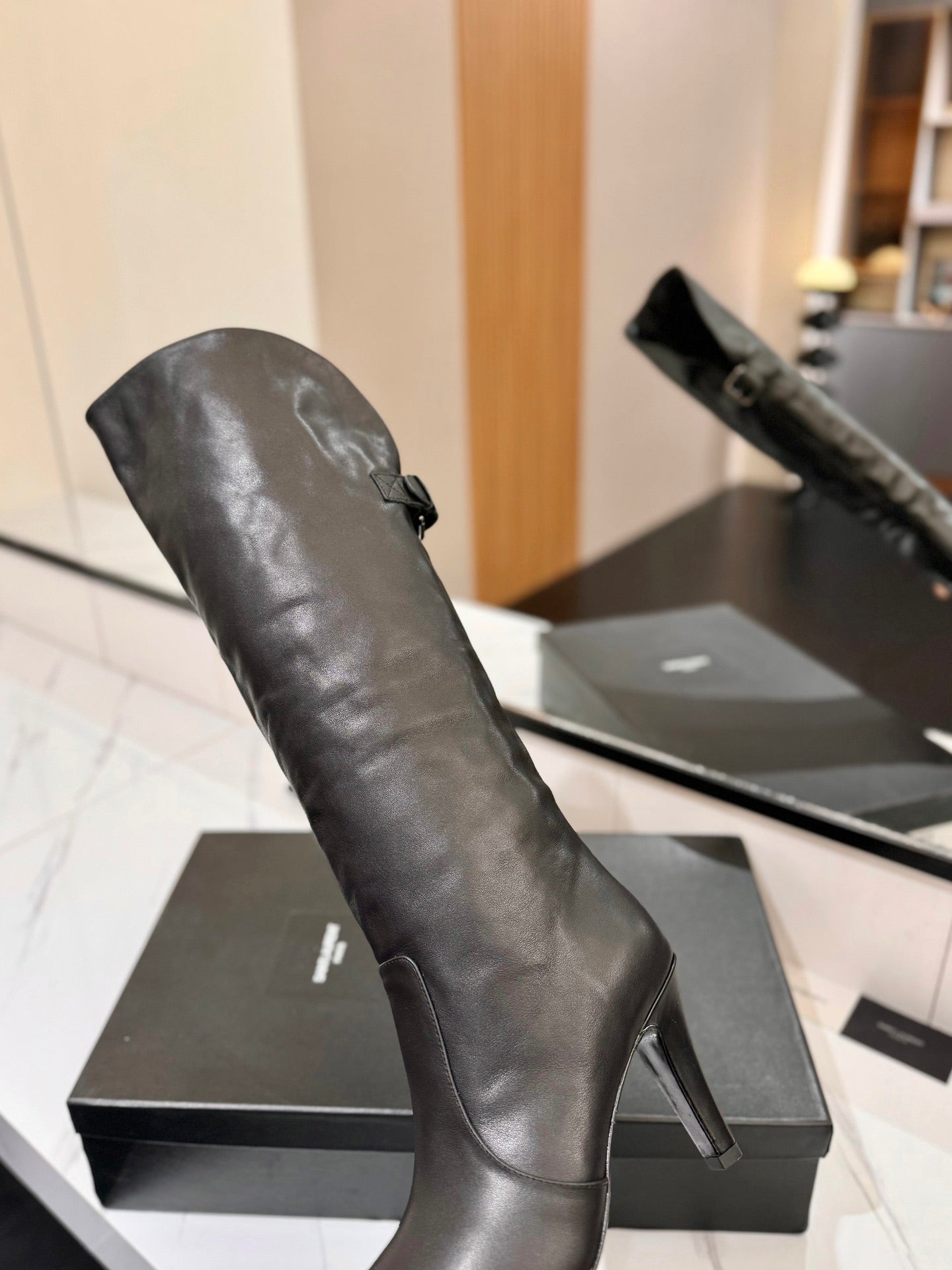 CLASSIC HIGH KNEE BOOTS IN BLACK CALFSKIN