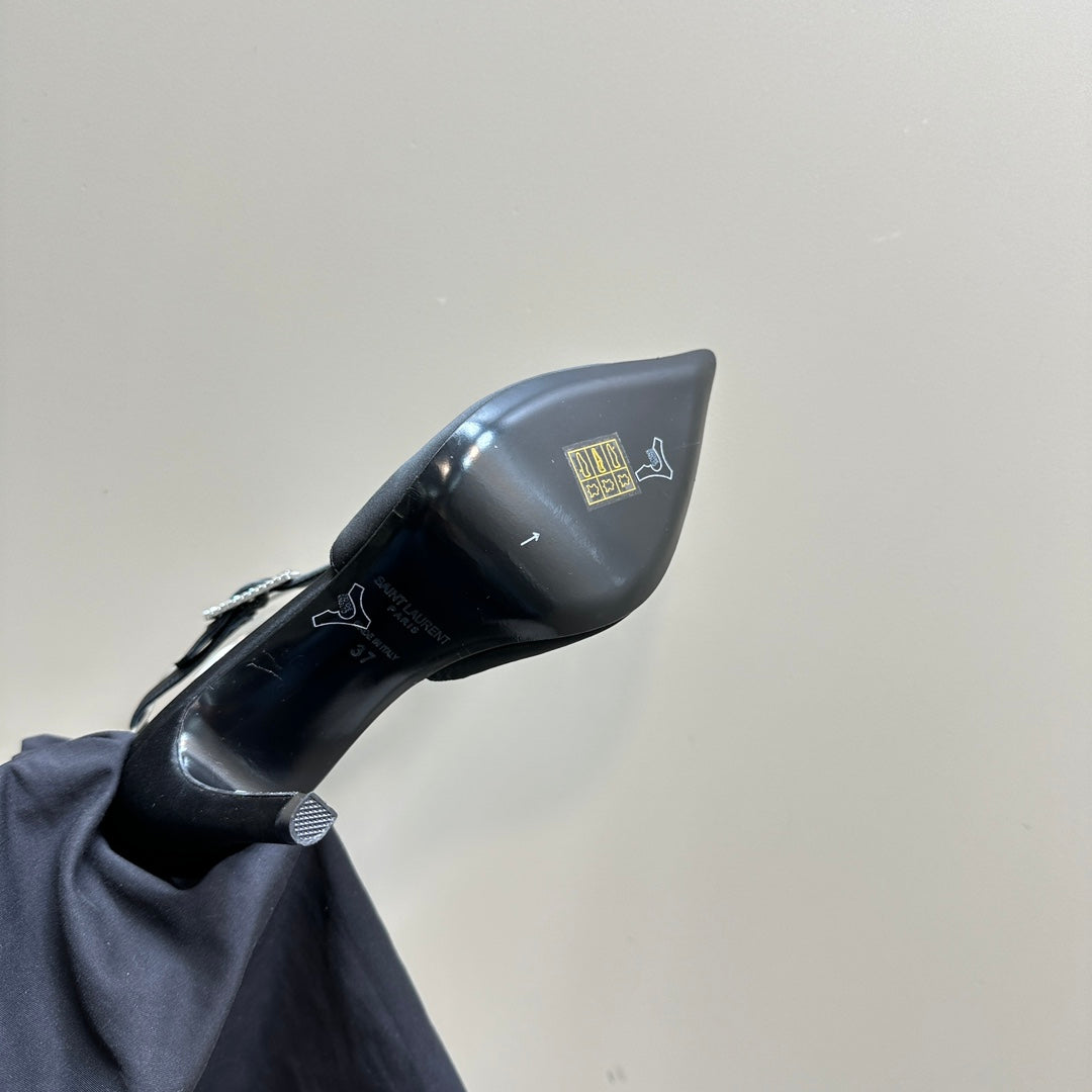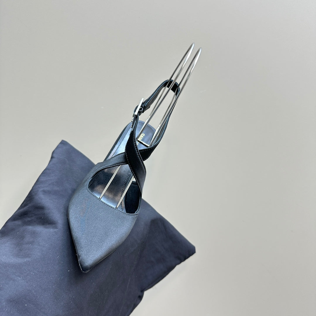 SL CROSS-STRAP SLINGBACK BLACK SATIN