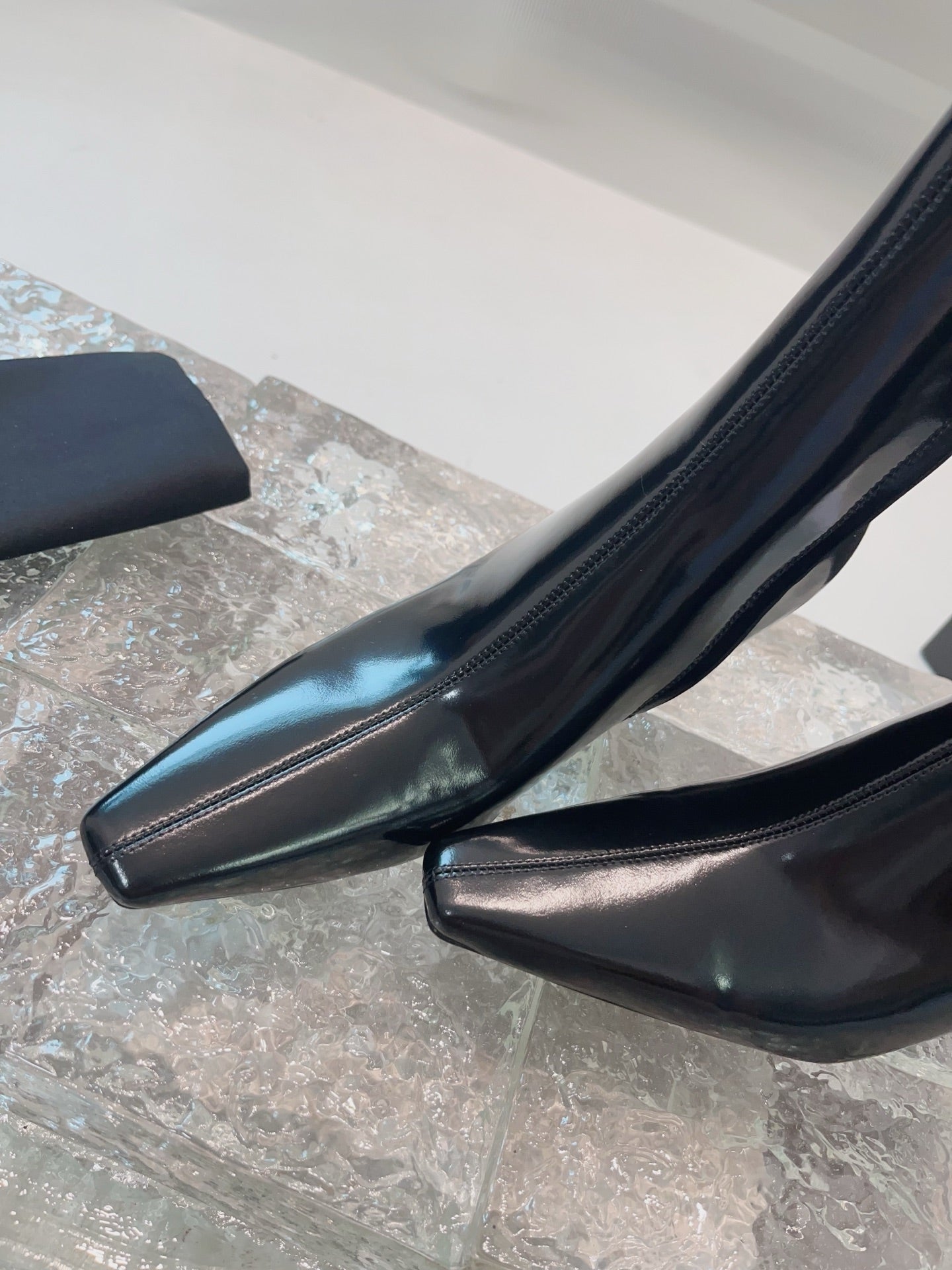 YSL 25 High Heeled Long Boot Black Cowhide 522263