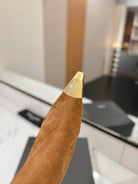 YSL 25 Metal Toe Short Boot Brown Gold Suede 520786