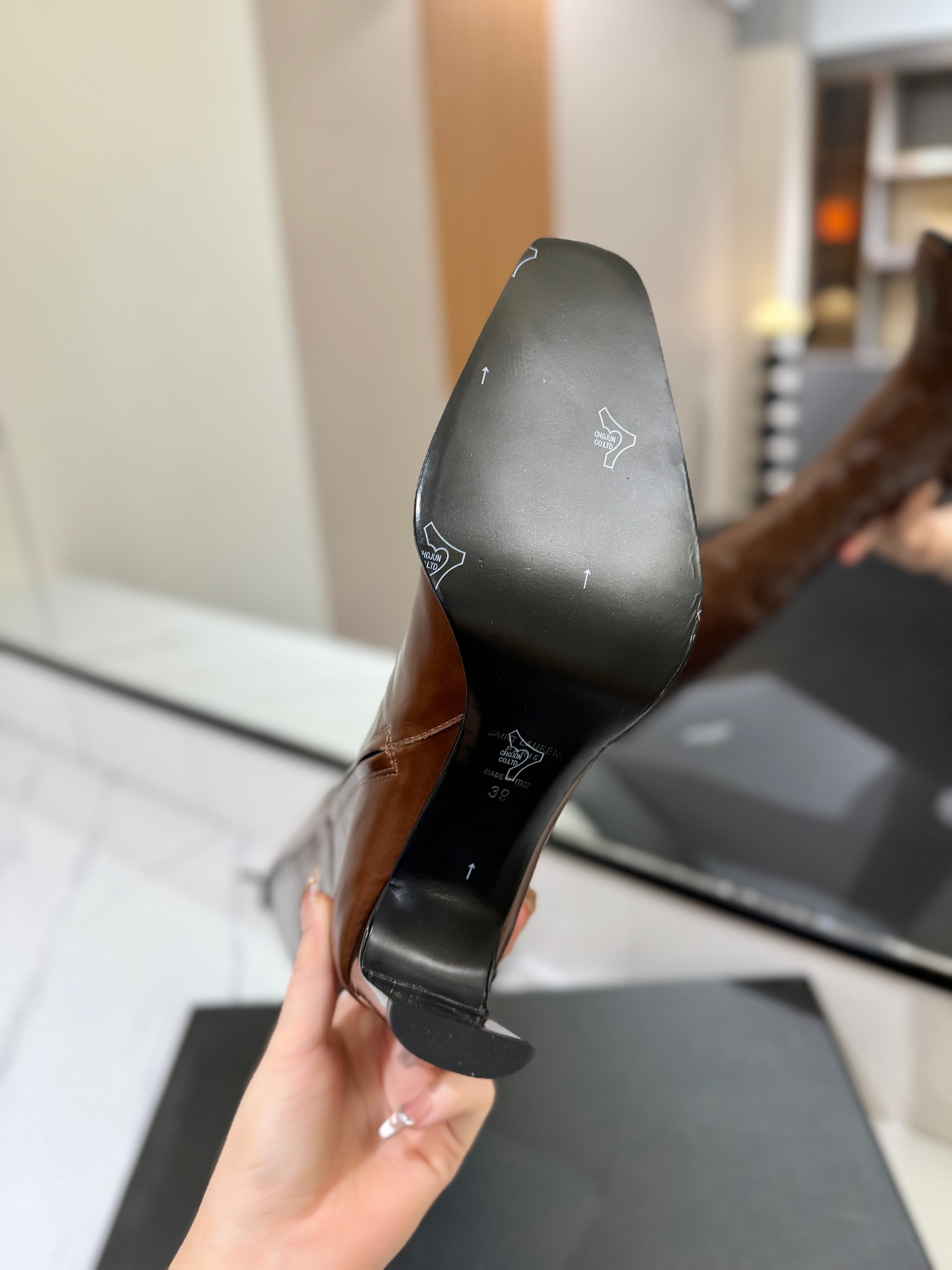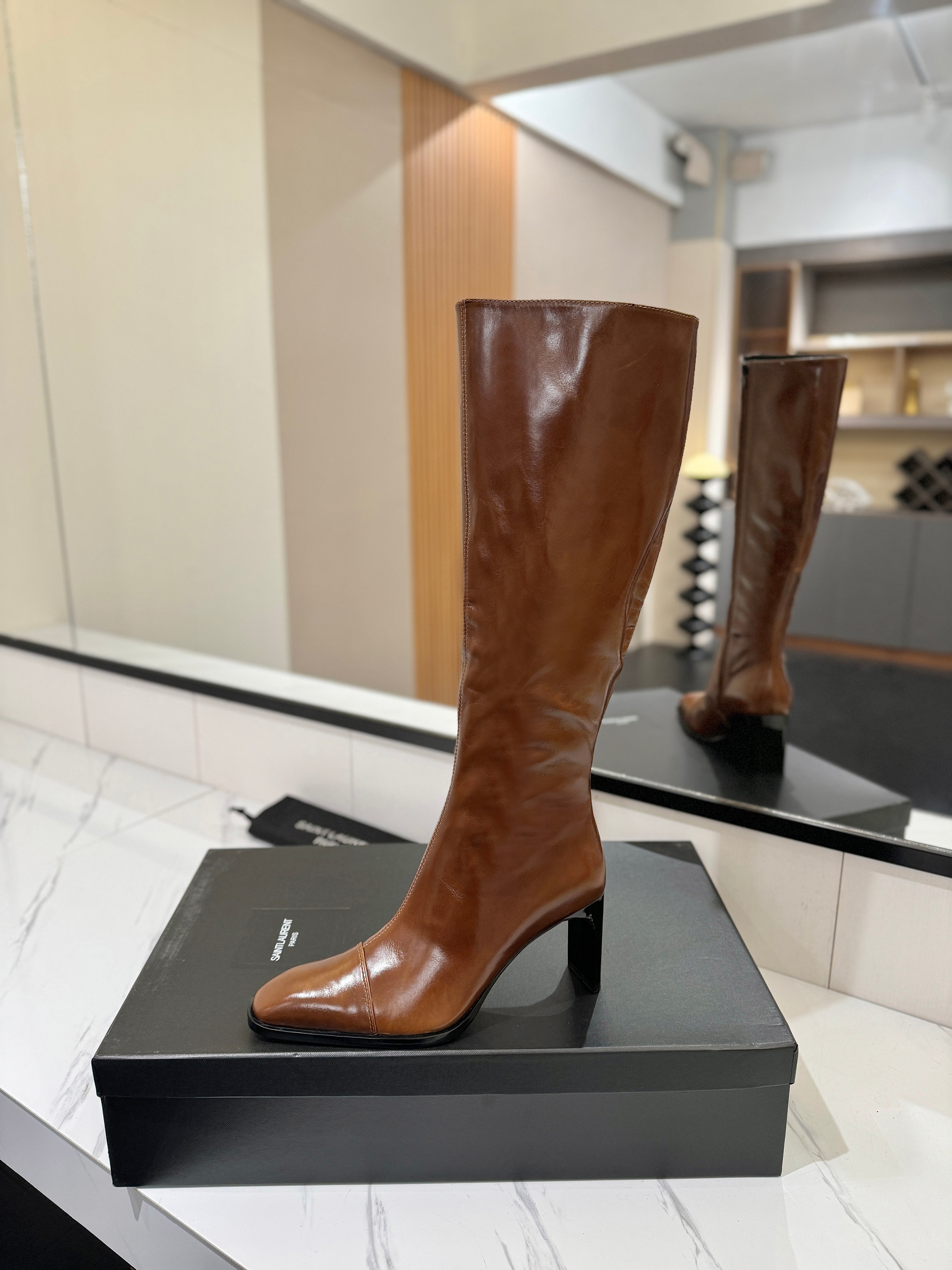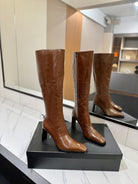 YSL 25 Zipper Sleeve Boot Brown Cowhide 520789