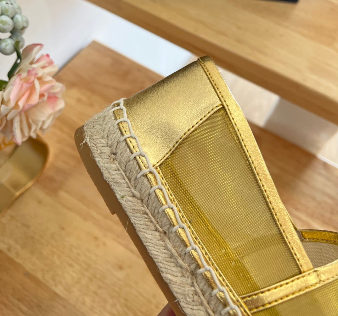 SL YVES LOGO SLIP ON METALLIC GOLD CALFSKIN AND MESH