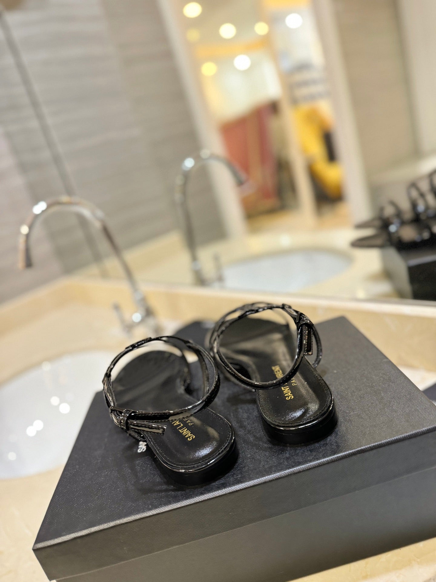 SL CASSANDRA FLAT SANDALS BLACK POLISHED CALFSKIN