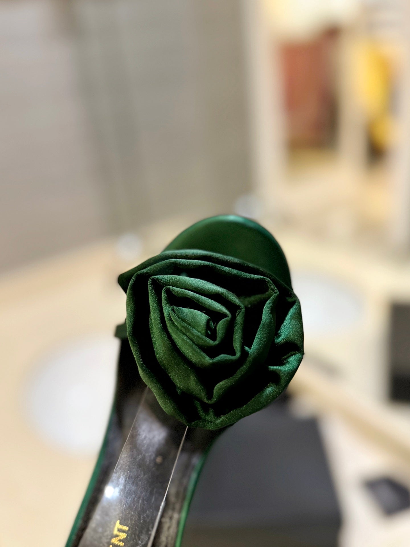 SL IVY FLORAL HEEL SANDALS DARK GREEN SATIN