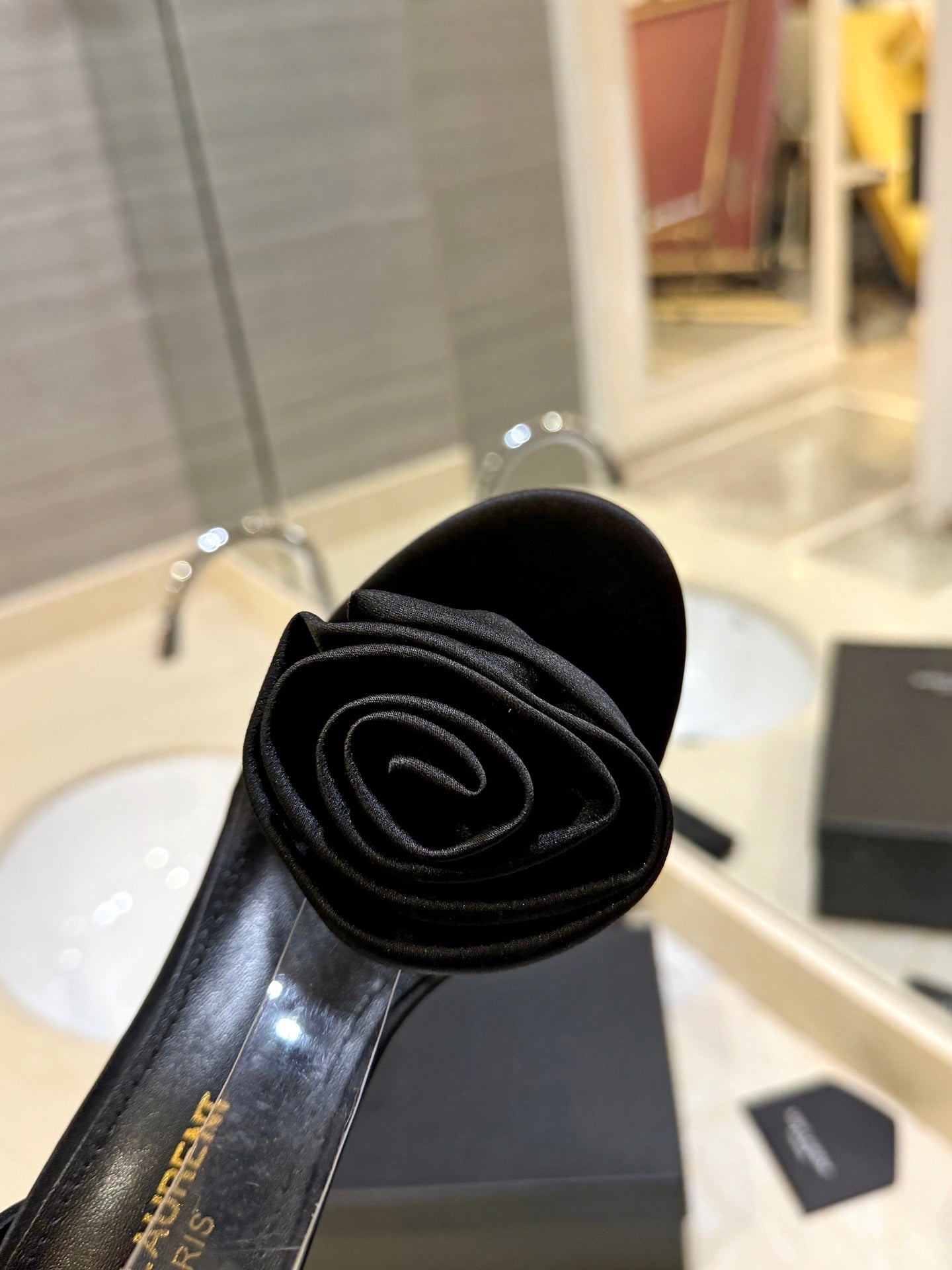 SL OPEN-TOES HIGH HEELS SLIPPER BLACK CALFSKIN