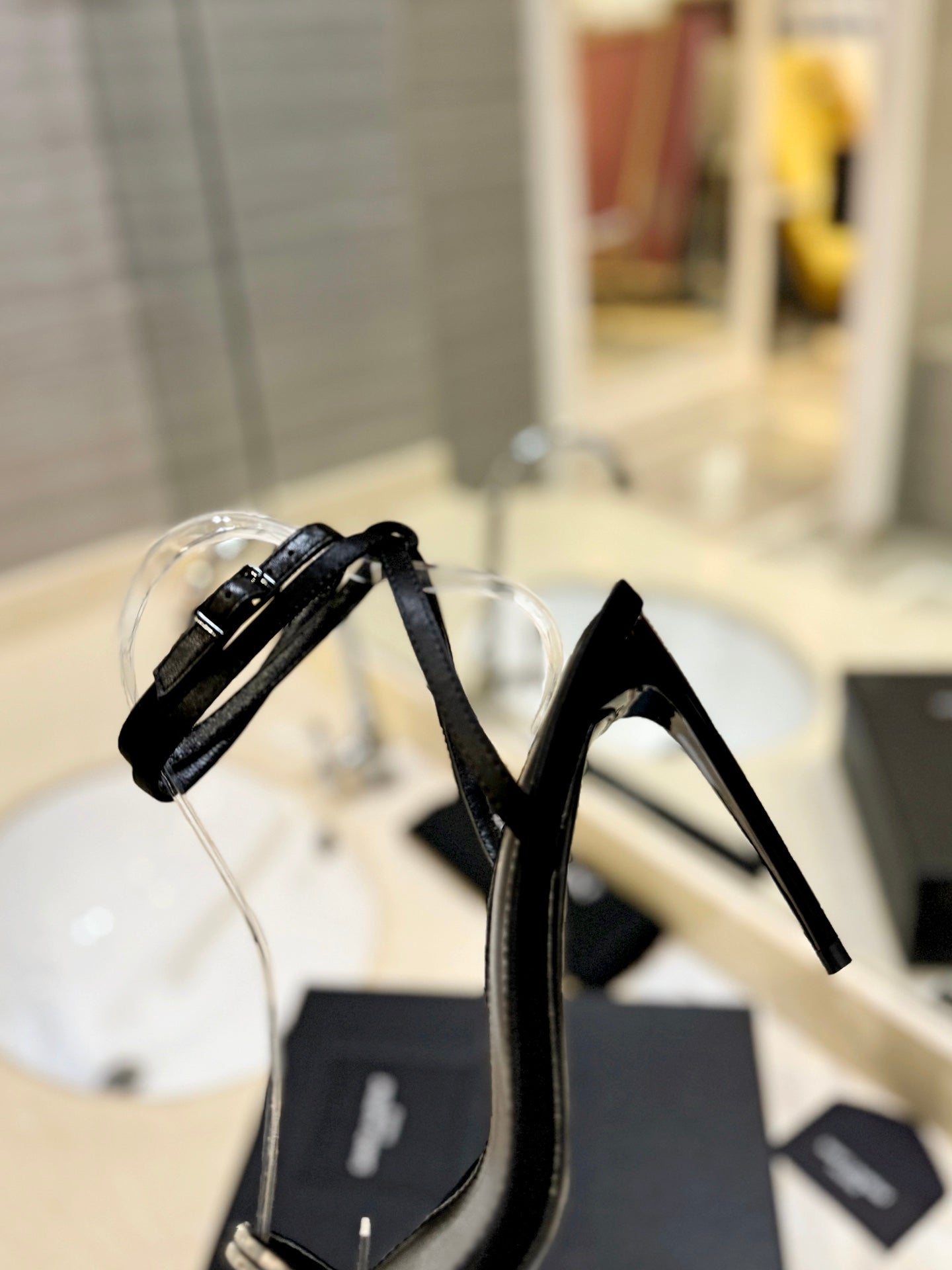 SL CASSANDRA HEELED SANDALS BLACK POLISHED CALFSKIN
