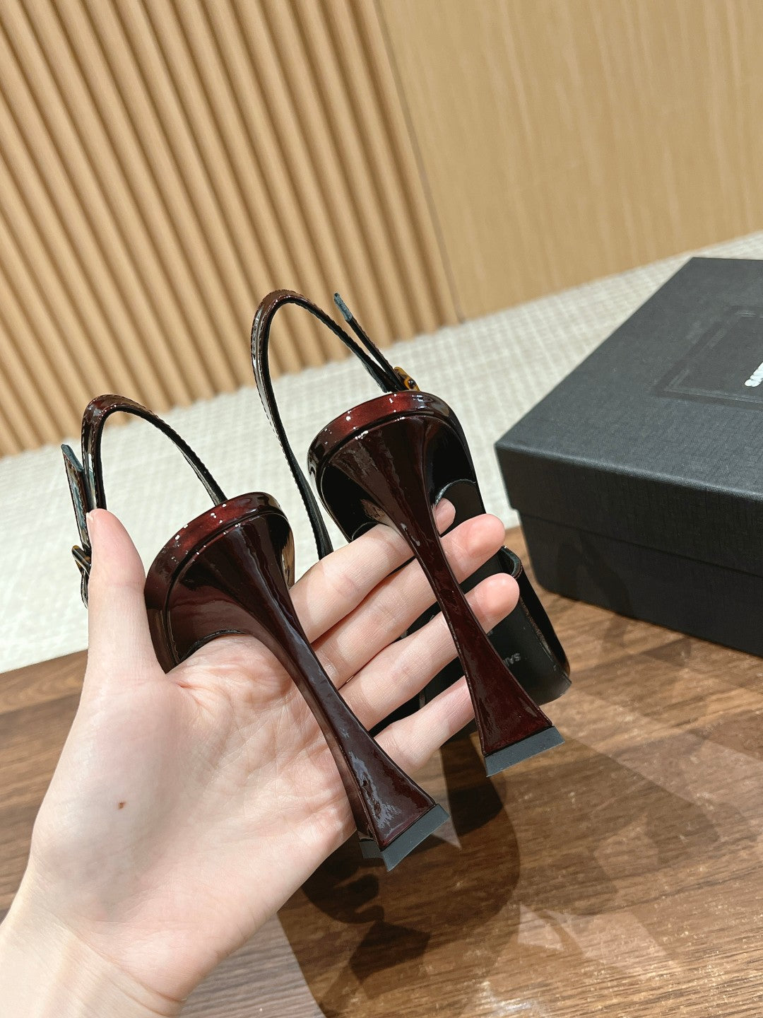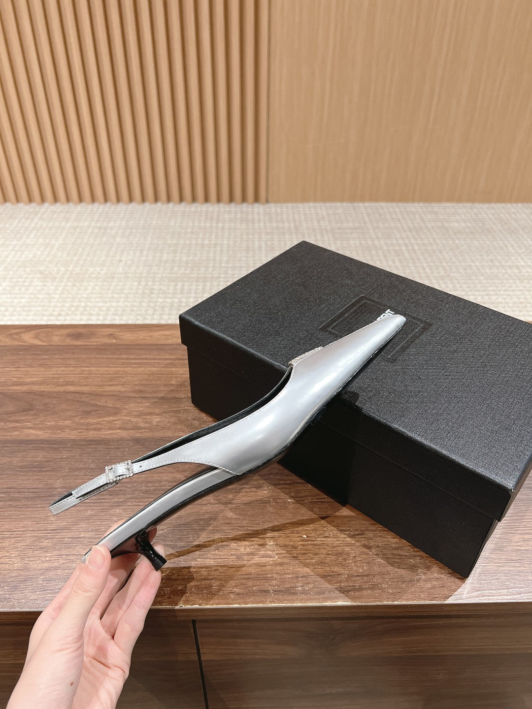 SL SQUARE BUCKLE SLINGBACK BLACK POLISHED CALFSKIN