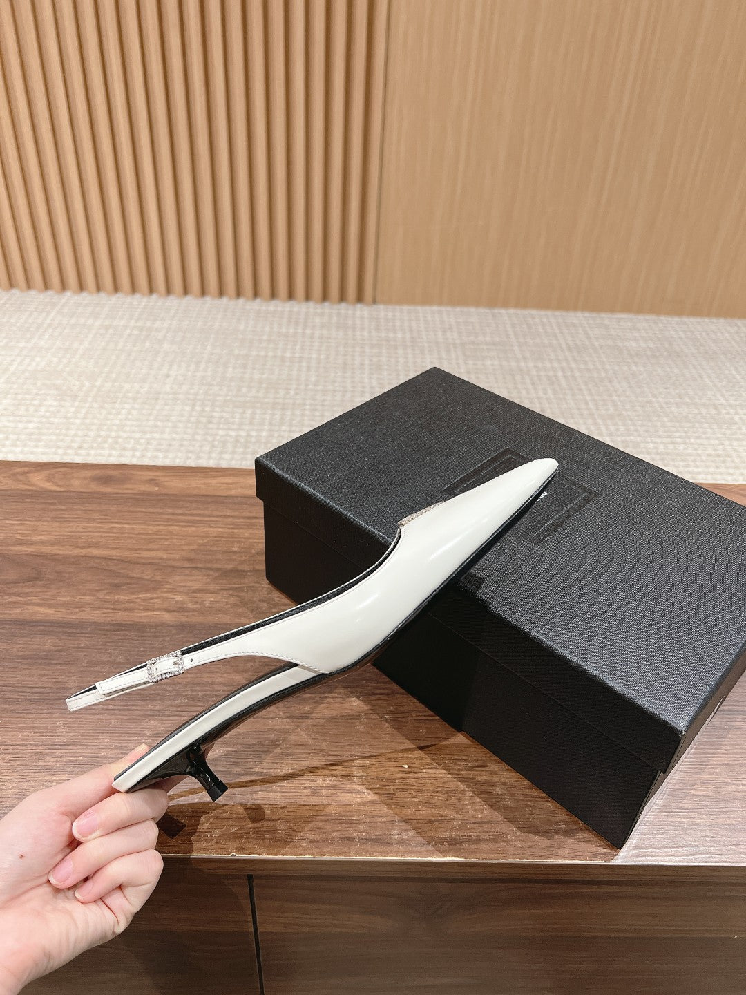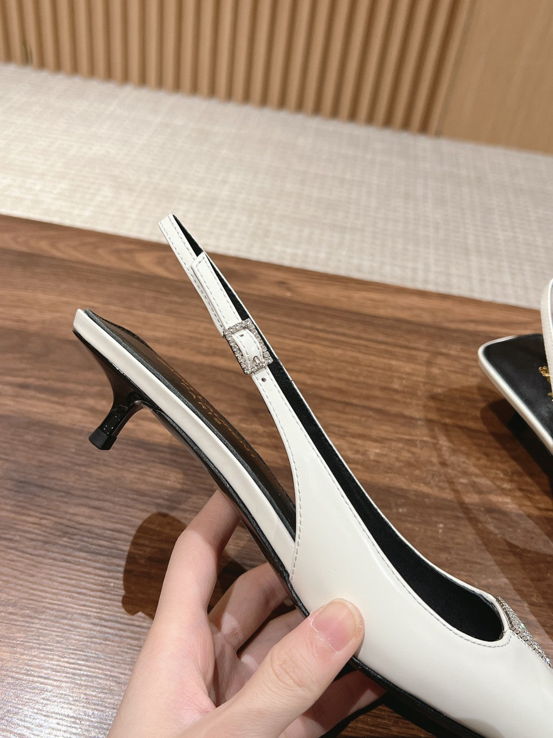 SL SQUARE BUCKLE SLINGBACK WHITE CALFSKIN