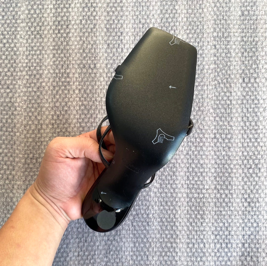 HIGH MULES WITH GEM IN BLACK GLOSSY CALFSKIN