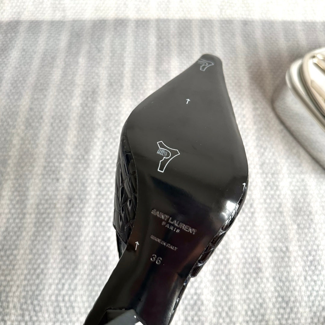 LEE SLINGBACK PUMPS 105 IN BLACK PATENT LEATHER GOLD HEEL
