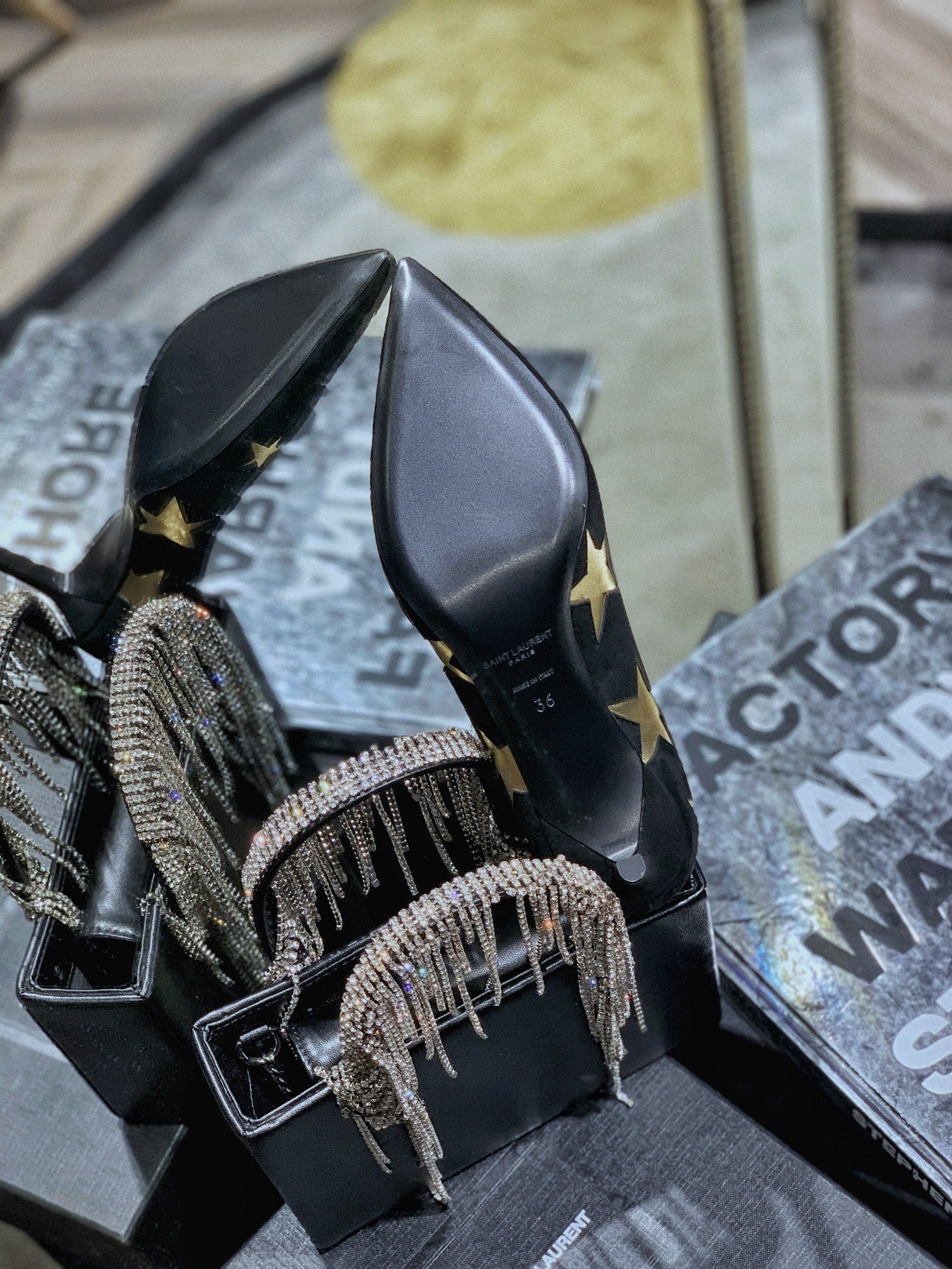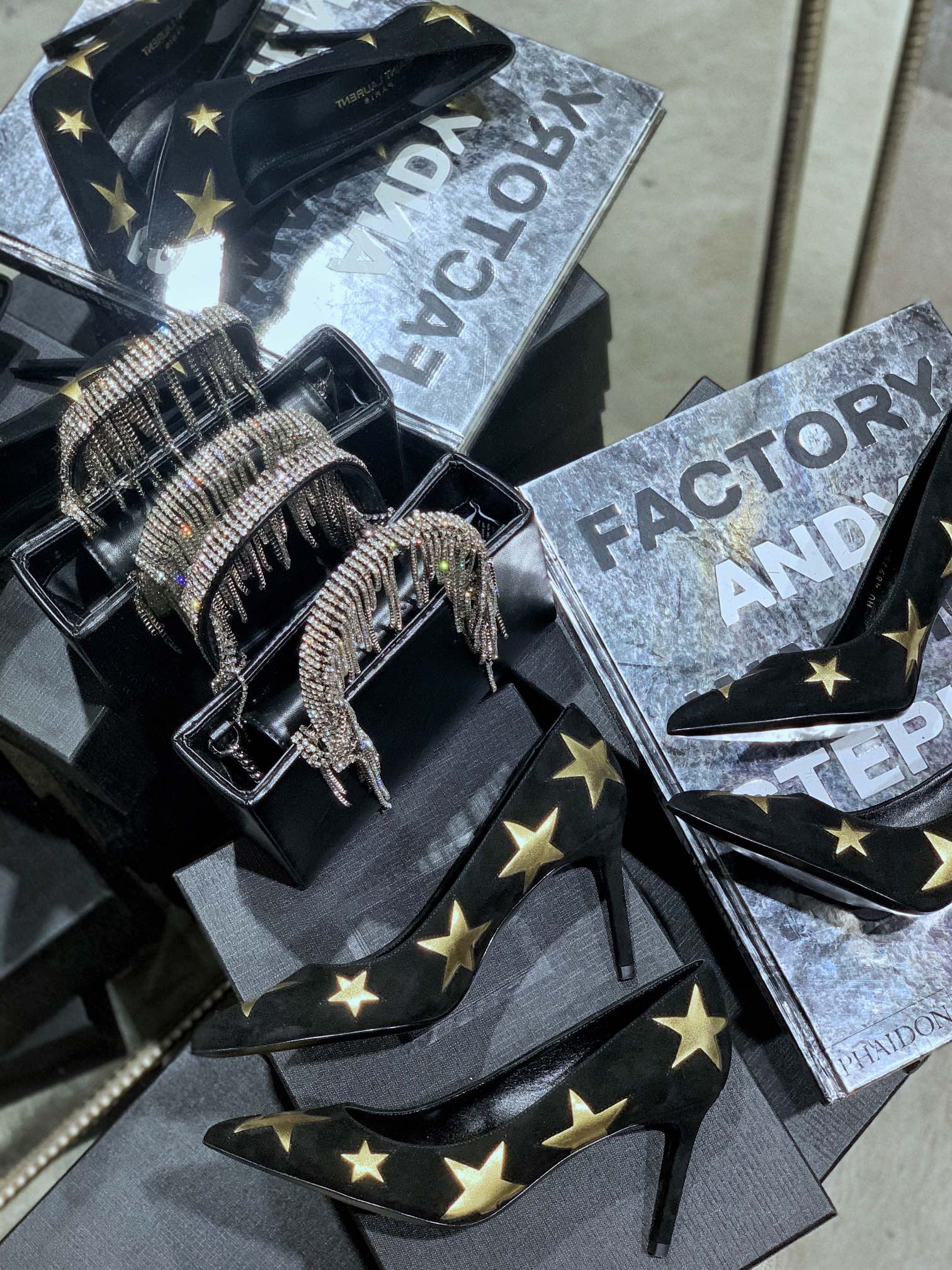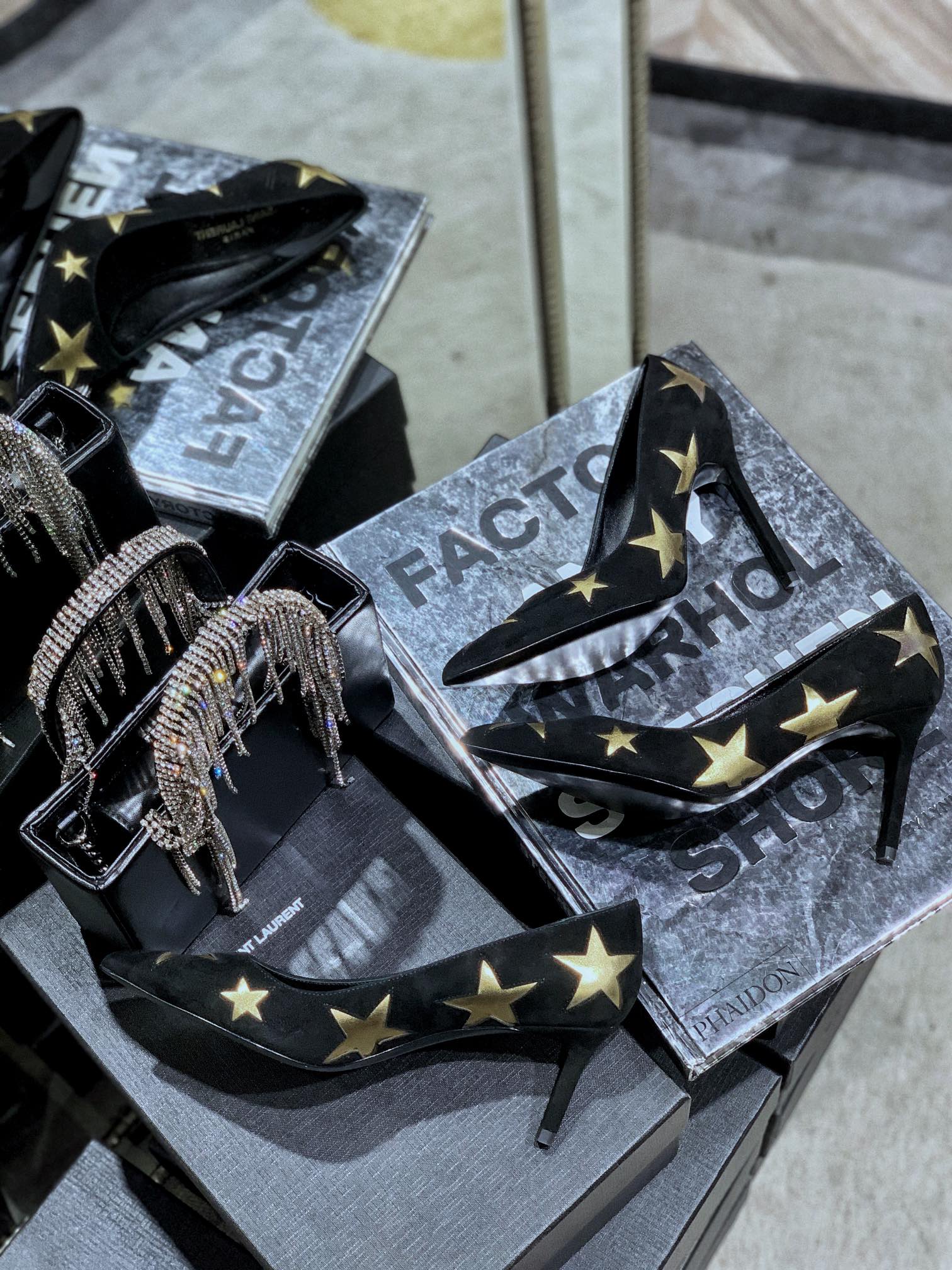 SL CHARLOTTE SILVER STAR PUMPS BLACK SUEDE