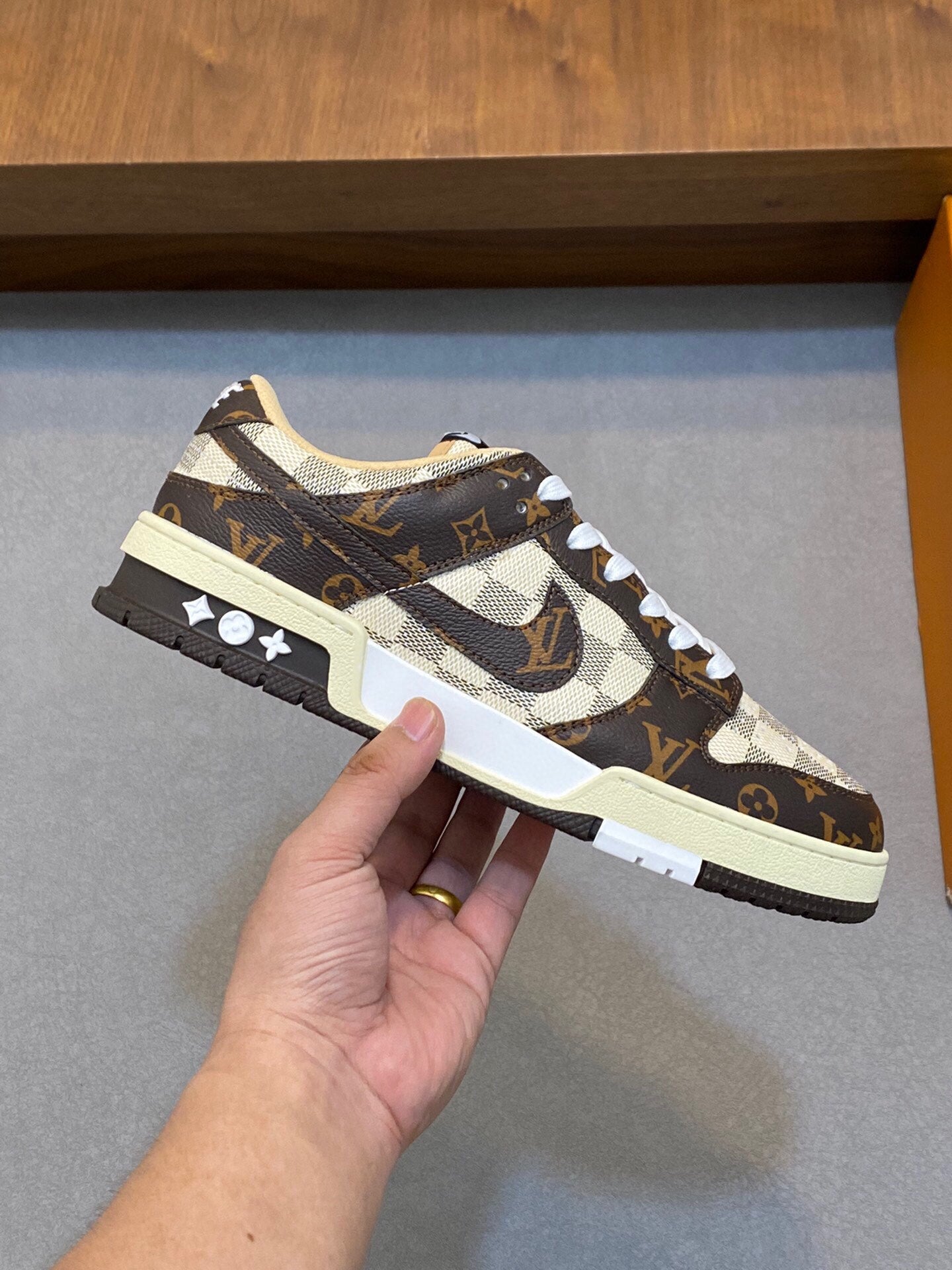 AIR TRAINER IN BROWN DAMIER CALFSKIN