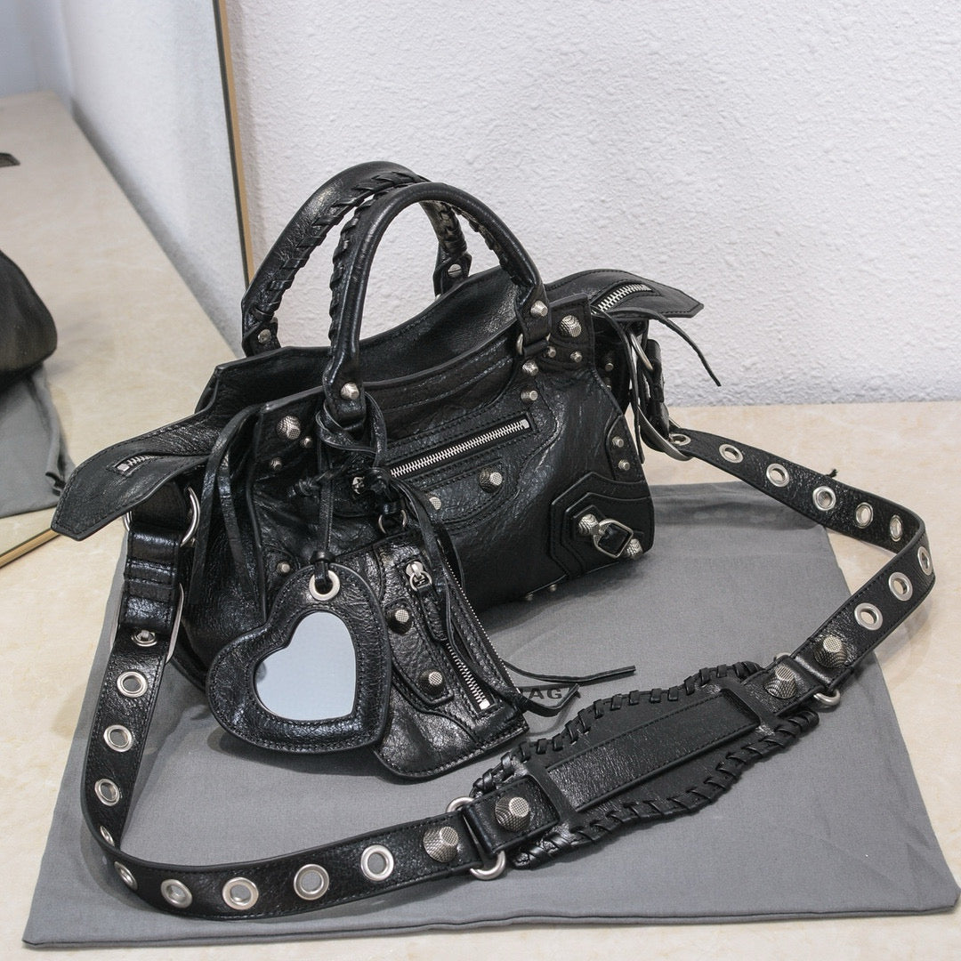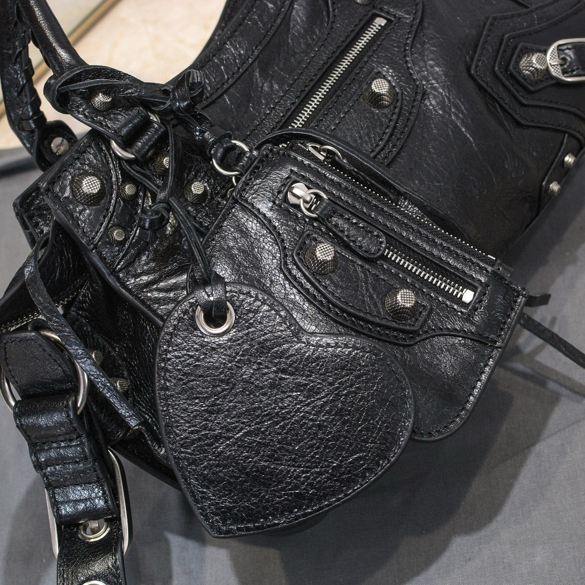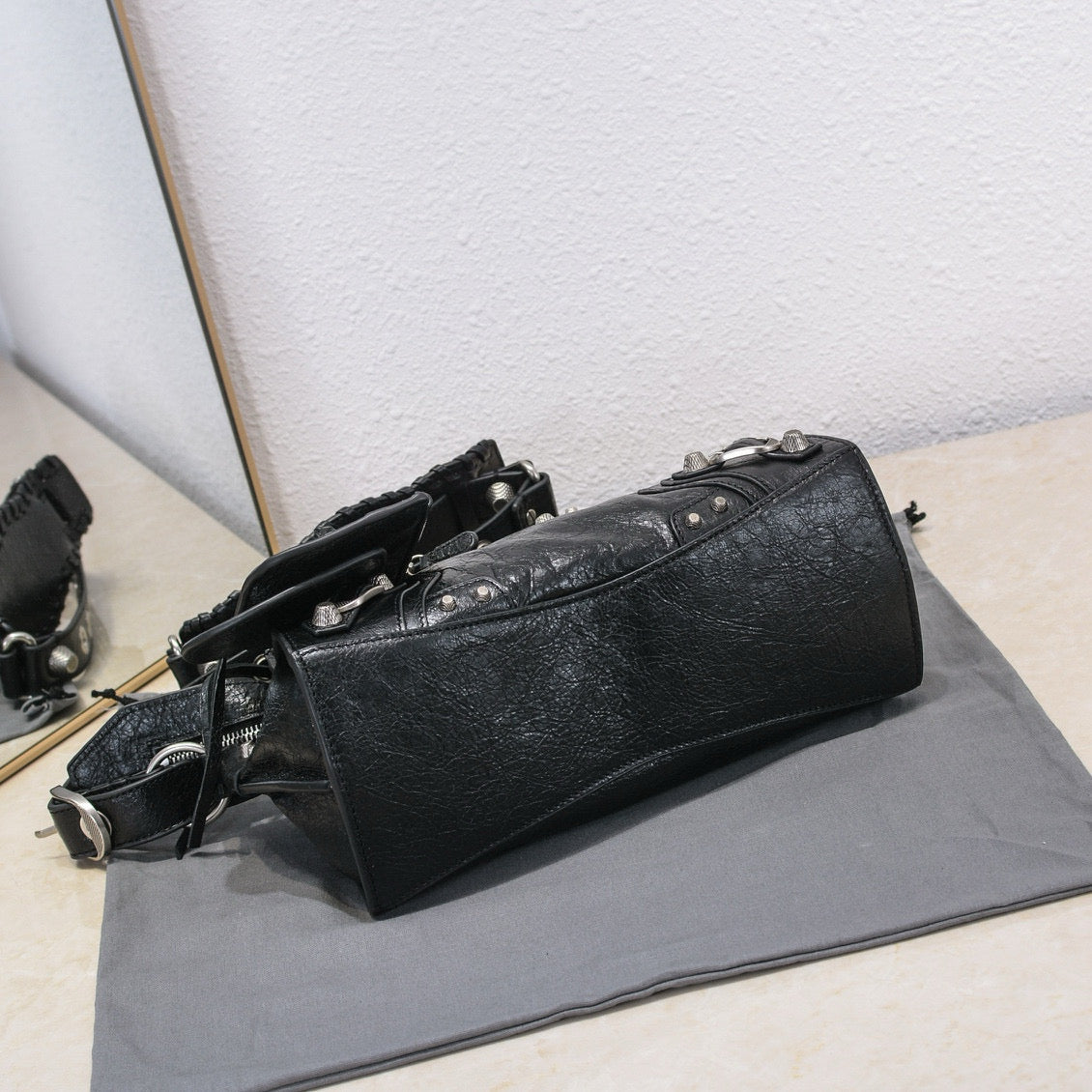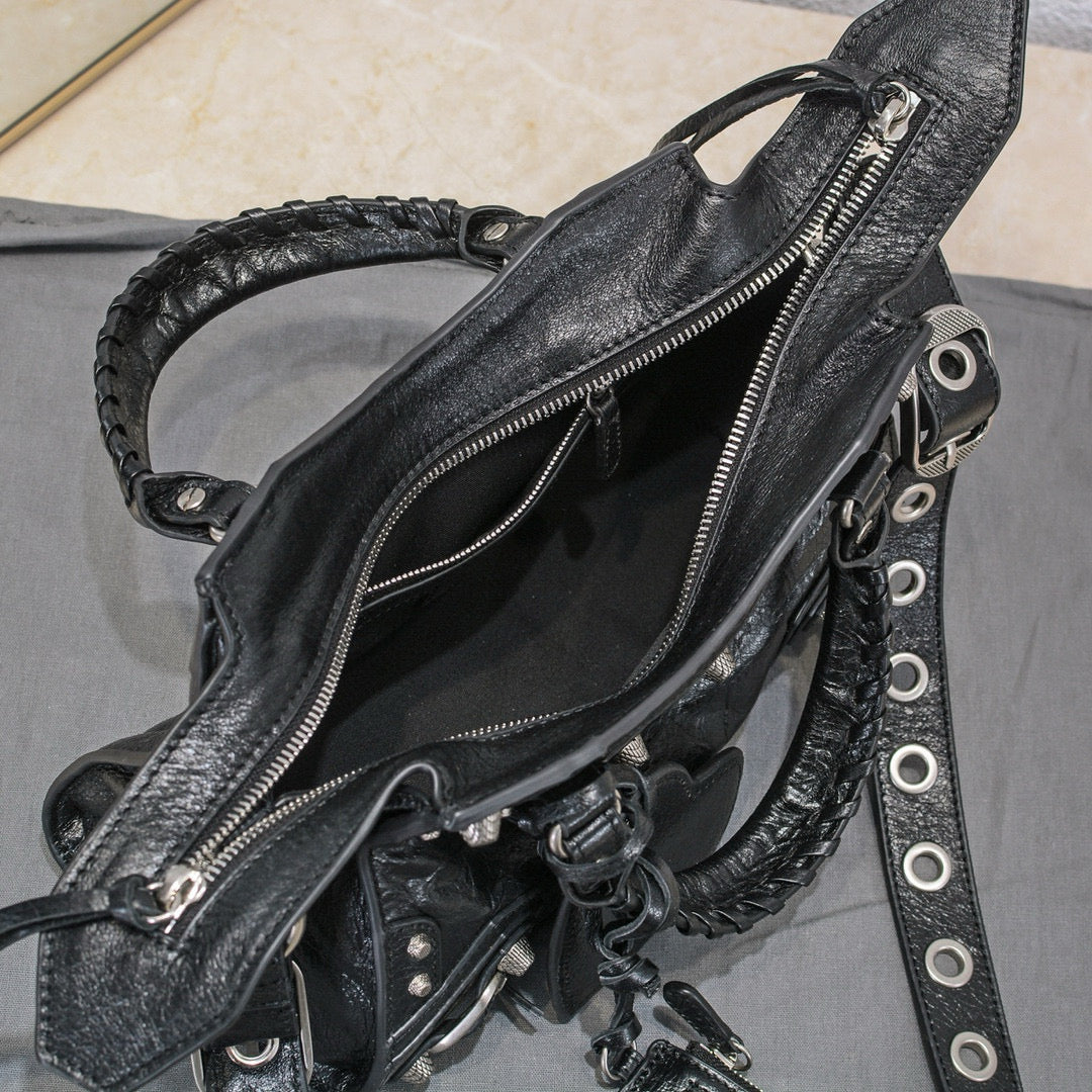 Balenciaga Neo 26cm Cagole City Handbag With Rhinestones Black Patent Calfskin
