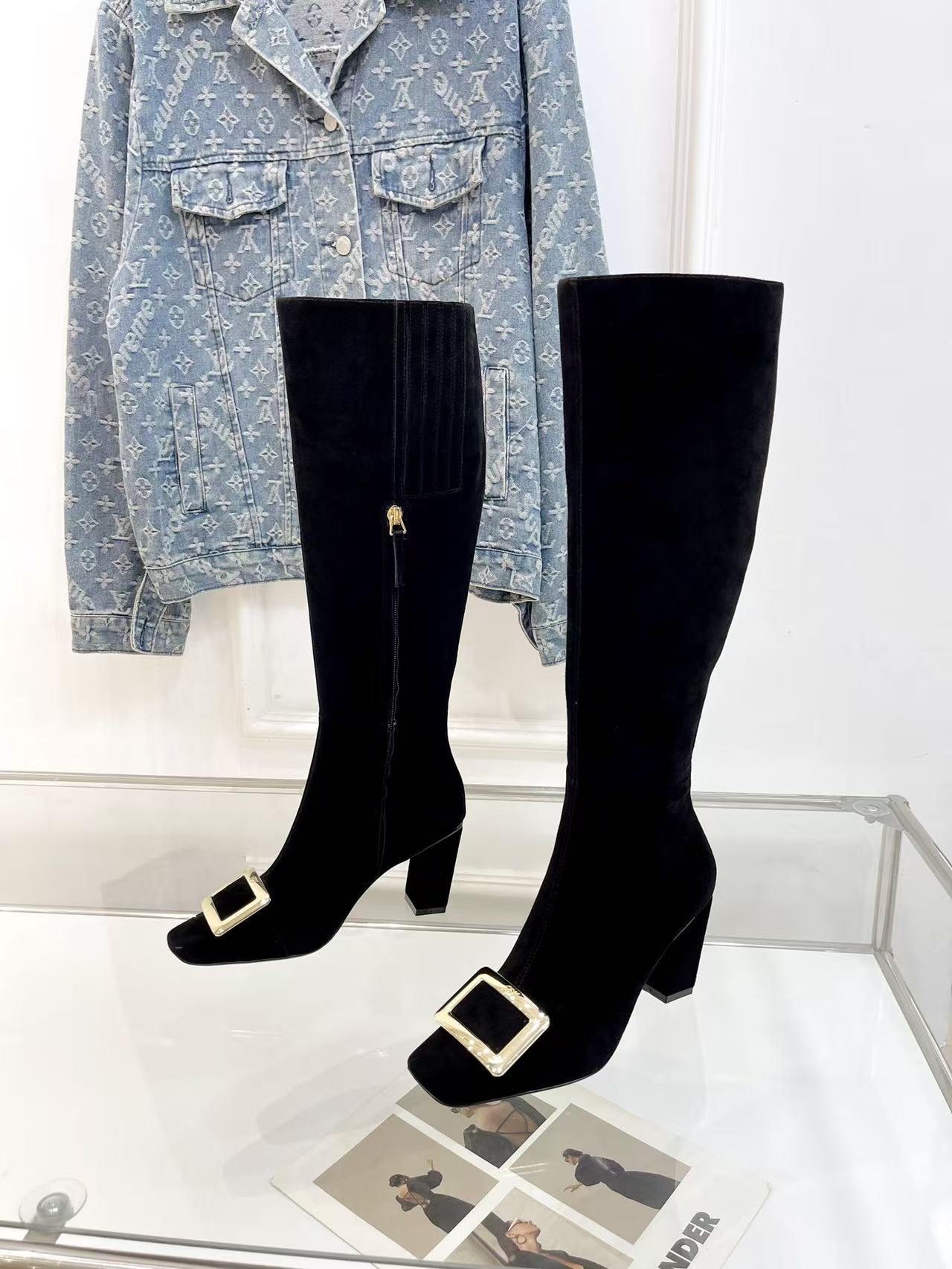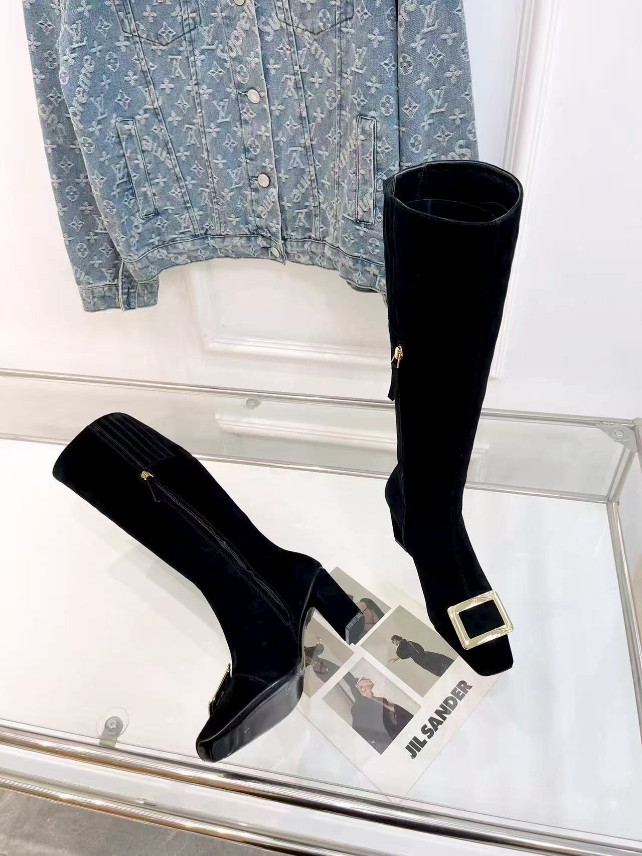 Belle Vivier Long Booties 7.5cm Black Suede