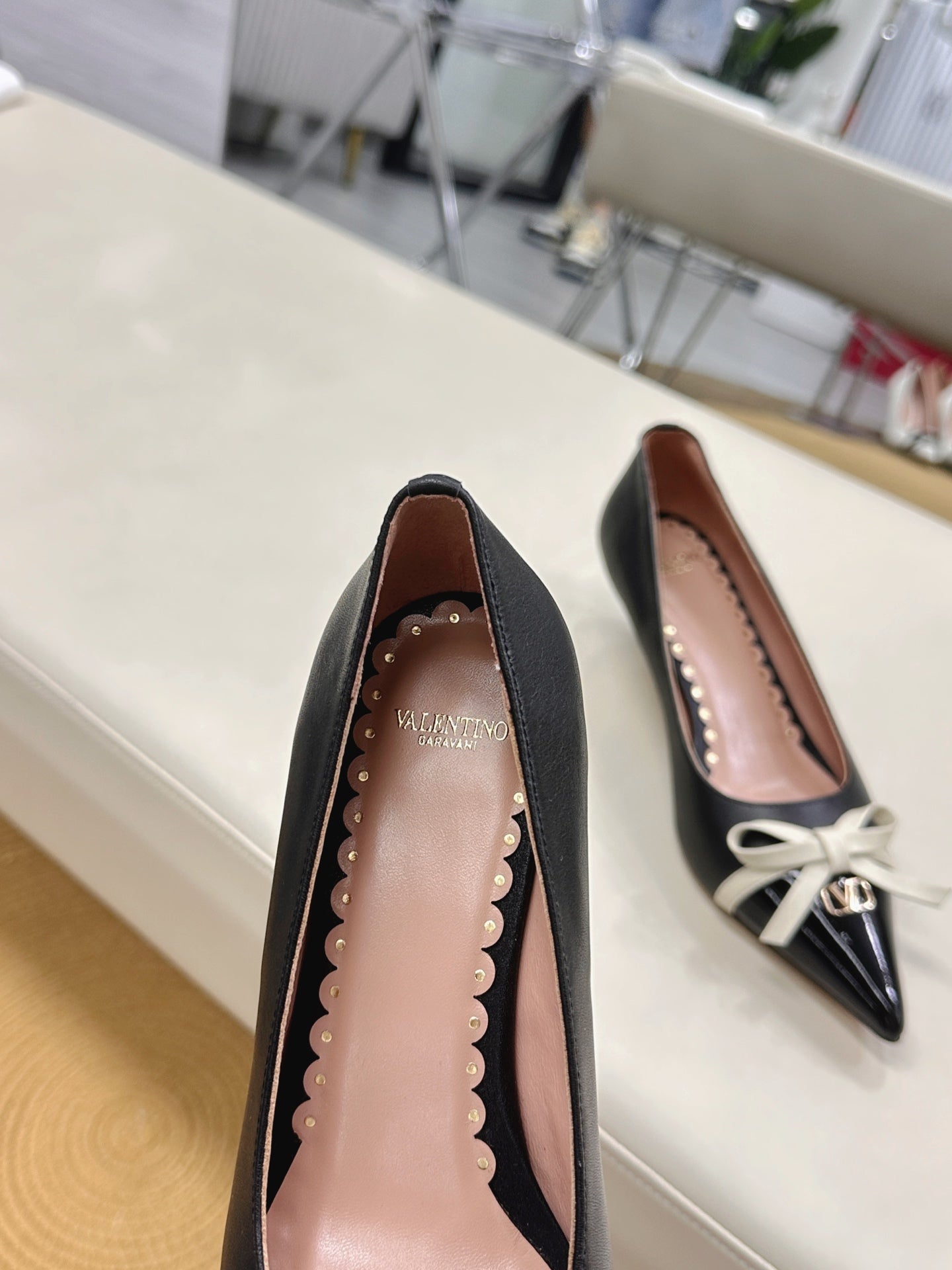 Bepointy Pump Bow In Black Cowhide And Patent Leather Pale Pink Sheepskin Linning 304254