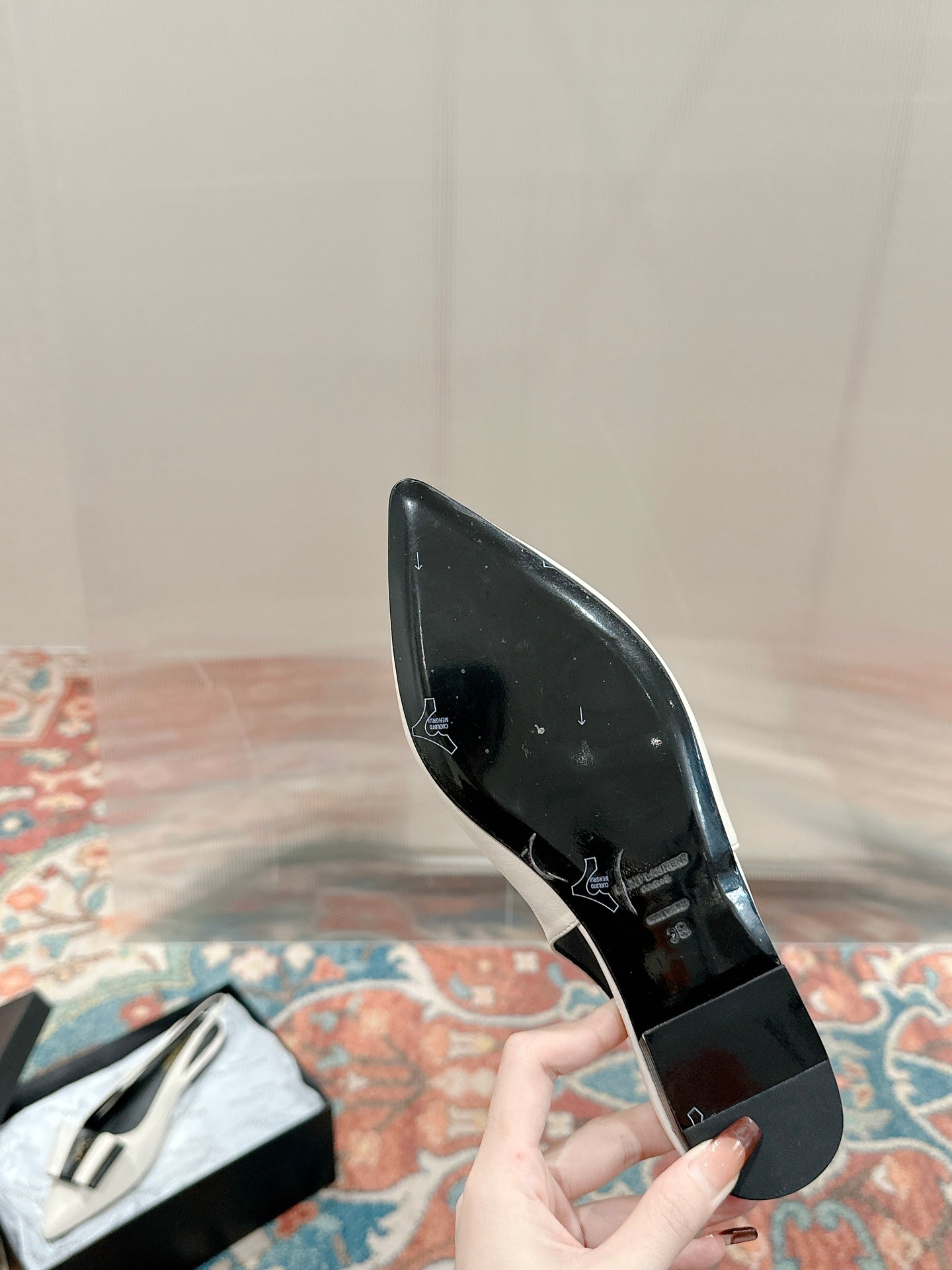 CASSANDRA SLINGBACK FLAT IN WHITE MIX BLACK SMOOTH LAMBSKIN