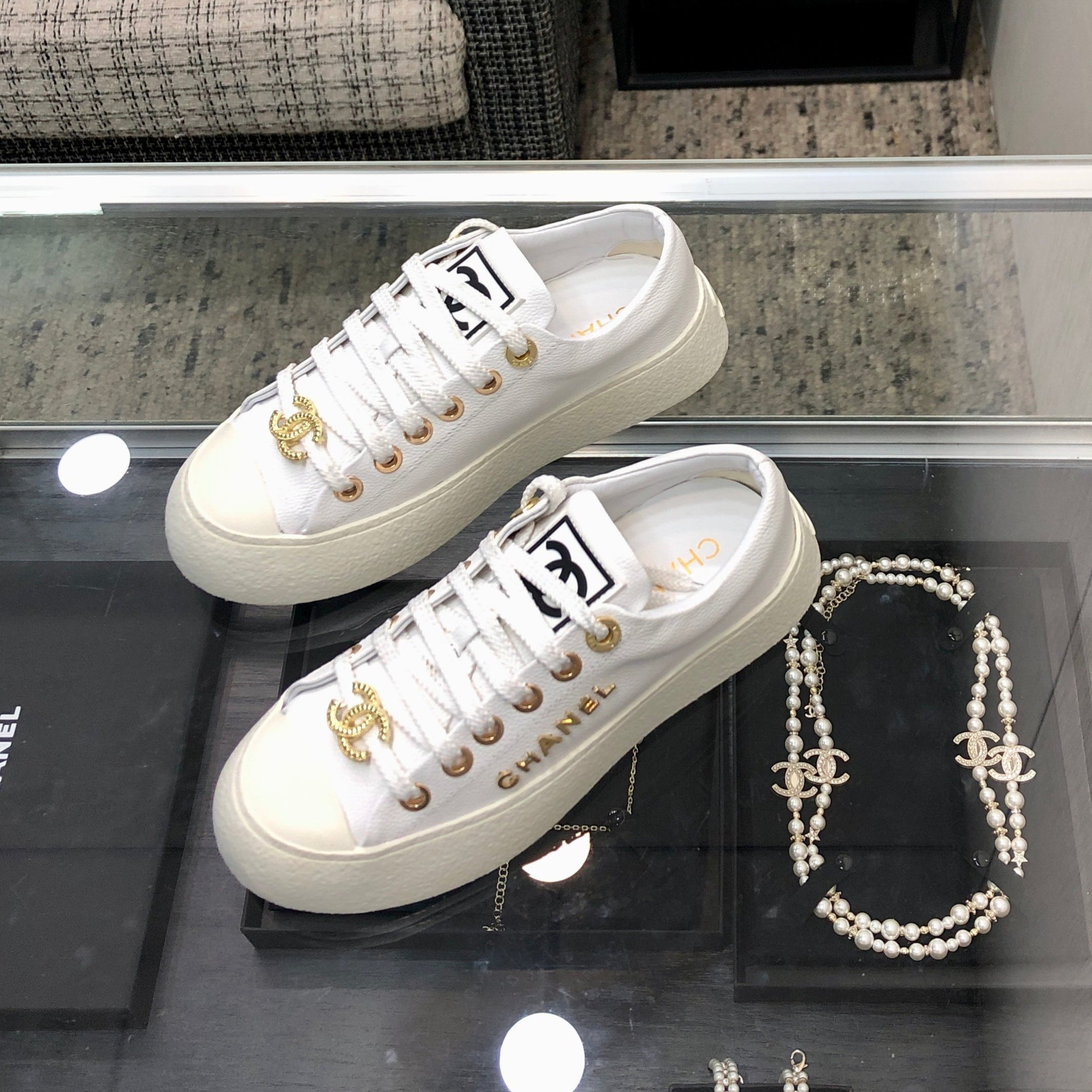 CASUAL SNEAKER IN WHITE LAMBSKIN WITH GOLD LOGO