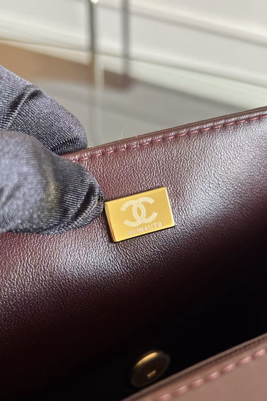 CC 2025 Flap Bag 23.5cm Beige Dark Burgundy Sherling Lambskin Gold Hardware