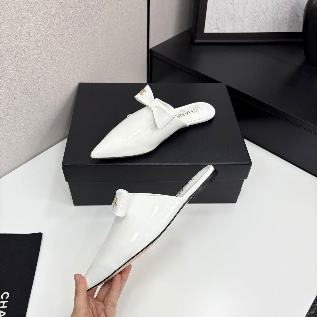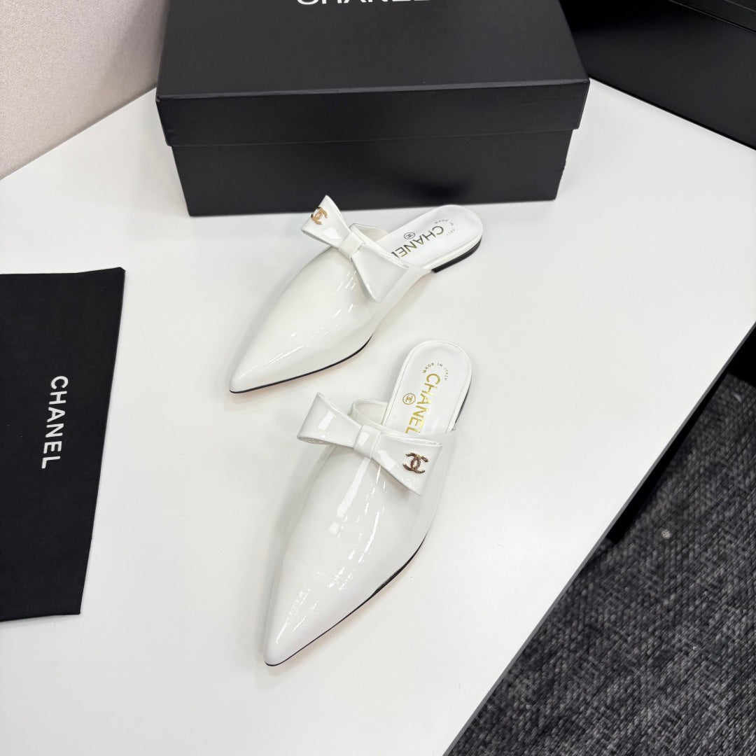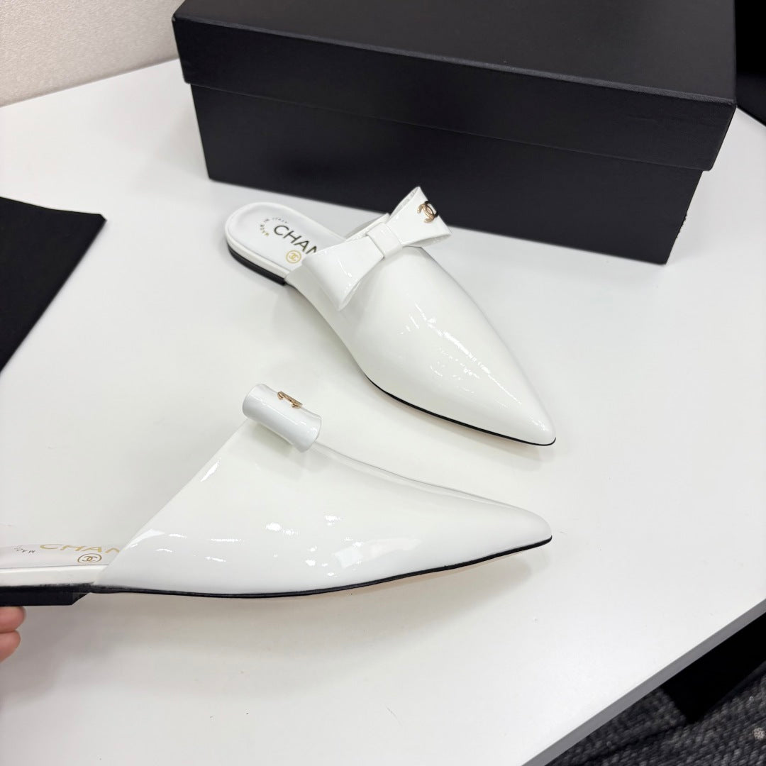CC 25 Point-Toe Flat Mule White Patent Calfskin 352473