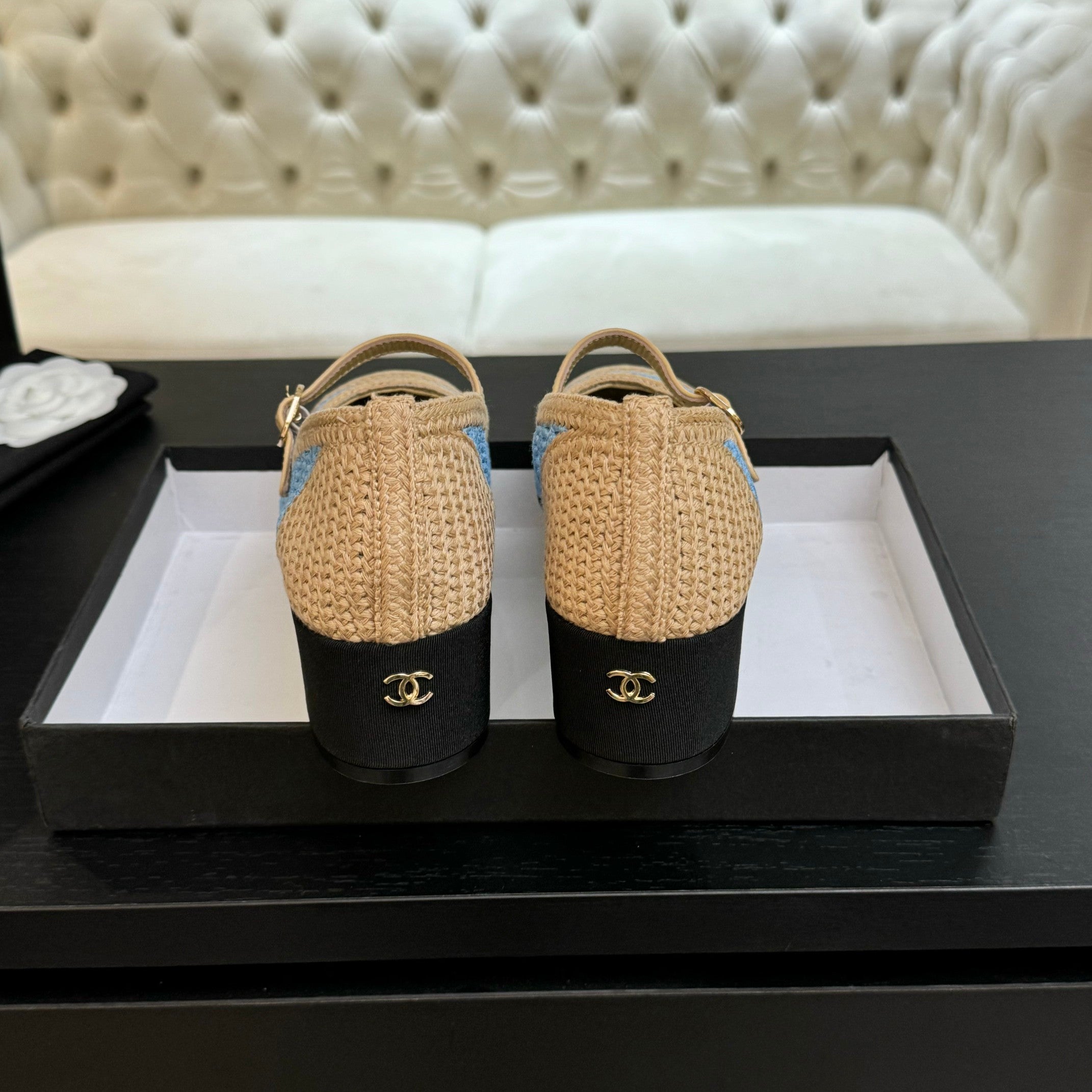 CC 25P Mary Jane 50mm Beige Blue Raffia 373789