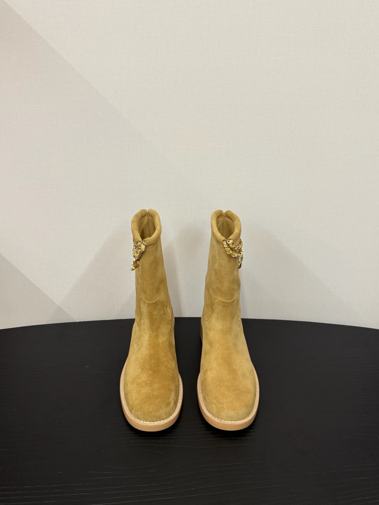 CC 25s Short Flat Chain Knight Boots Beige Cow Suede&Sheeepskin 417845