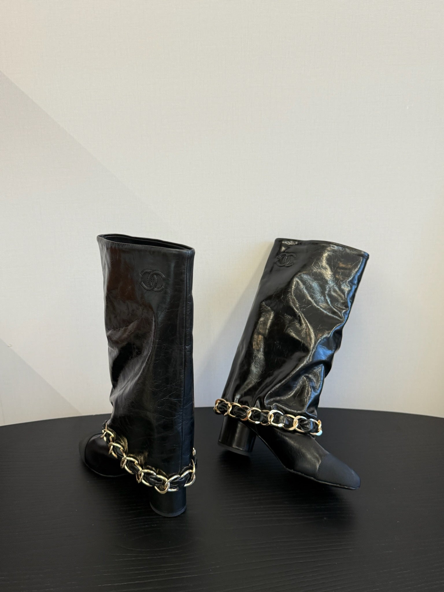 CC 25S High Boots With Chain Black Cowhide & Sheepskin 417848