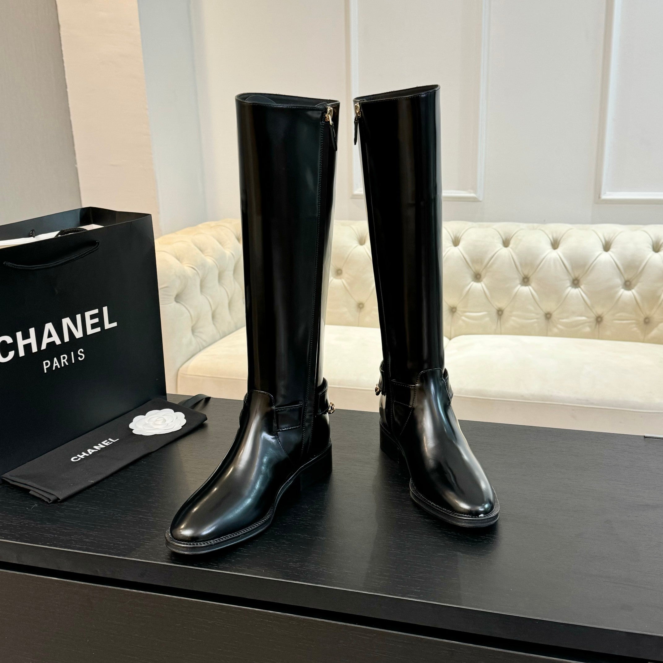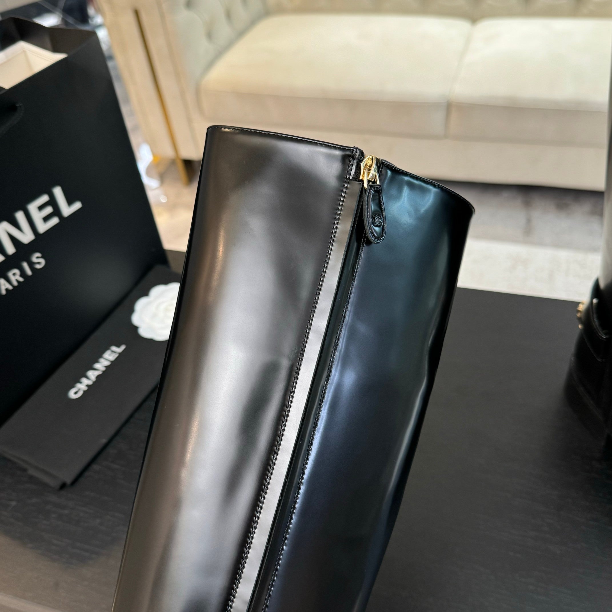 CC High Boots 30mm Glossy Black Chain Cowhide