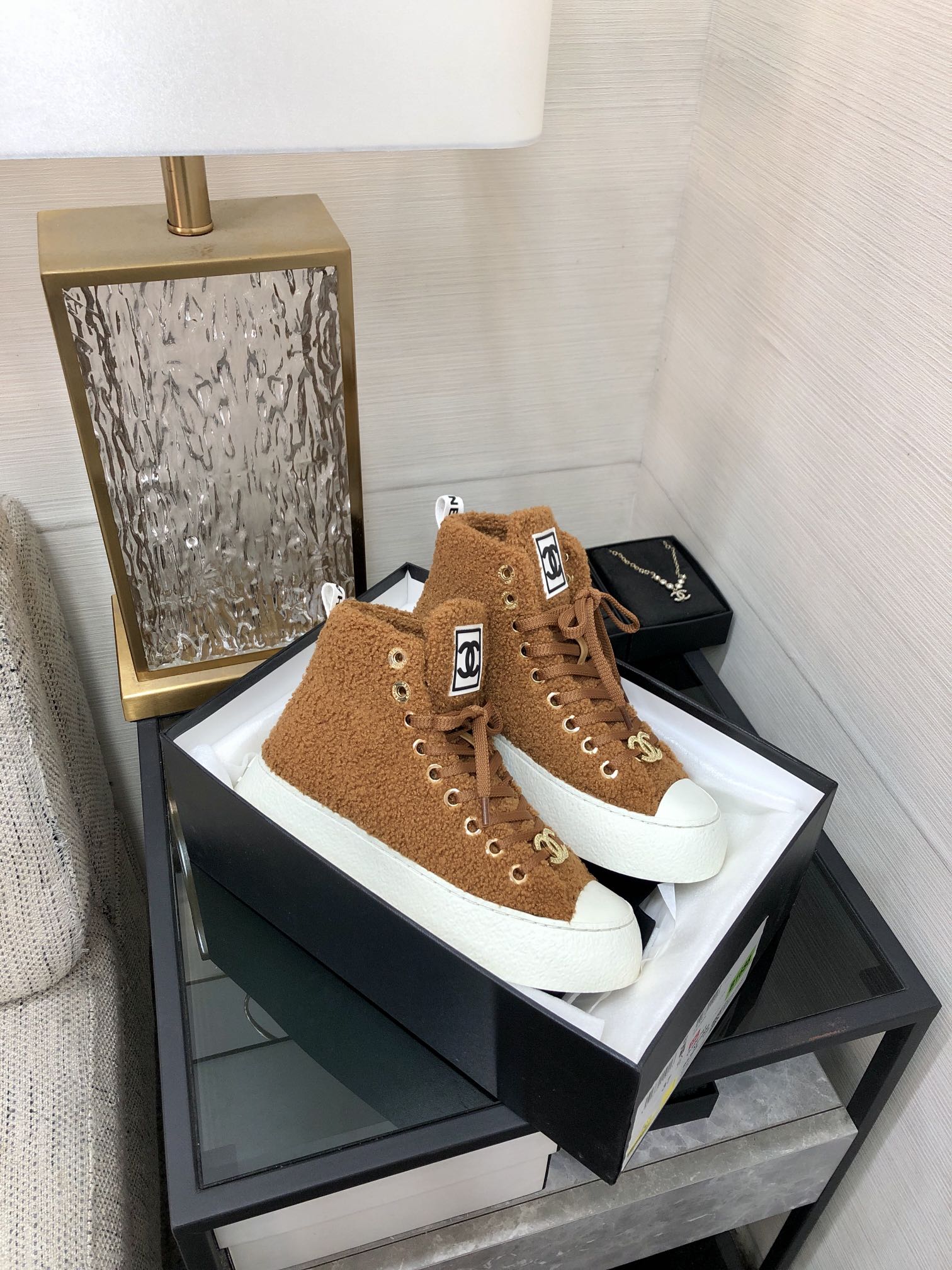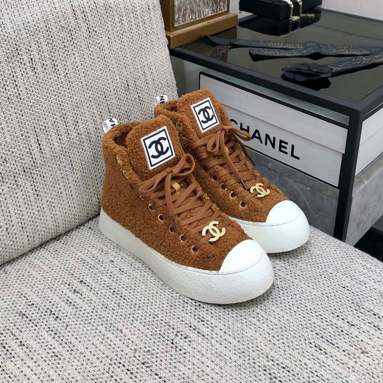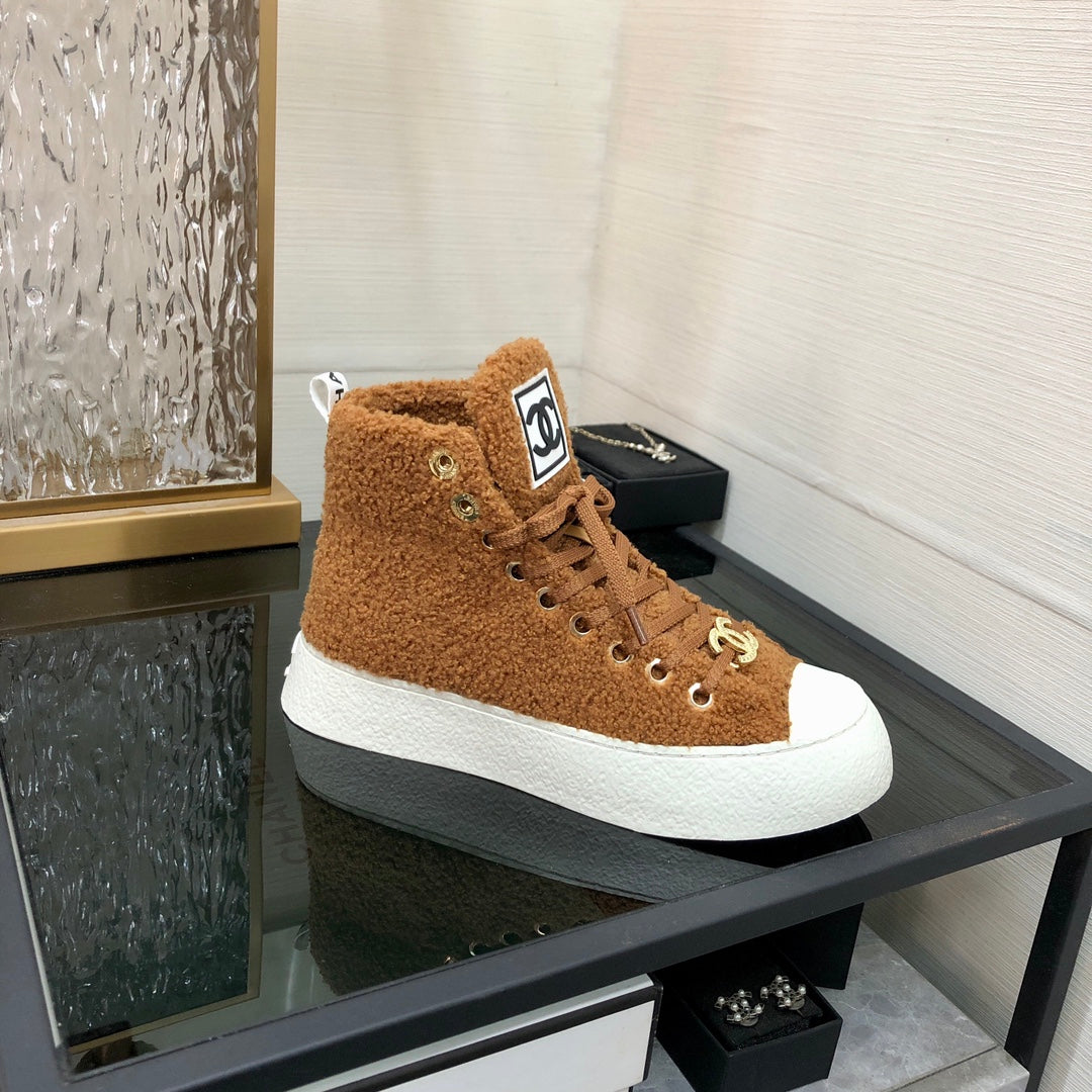 CC High Top Sneaker Brown Yellow Wool