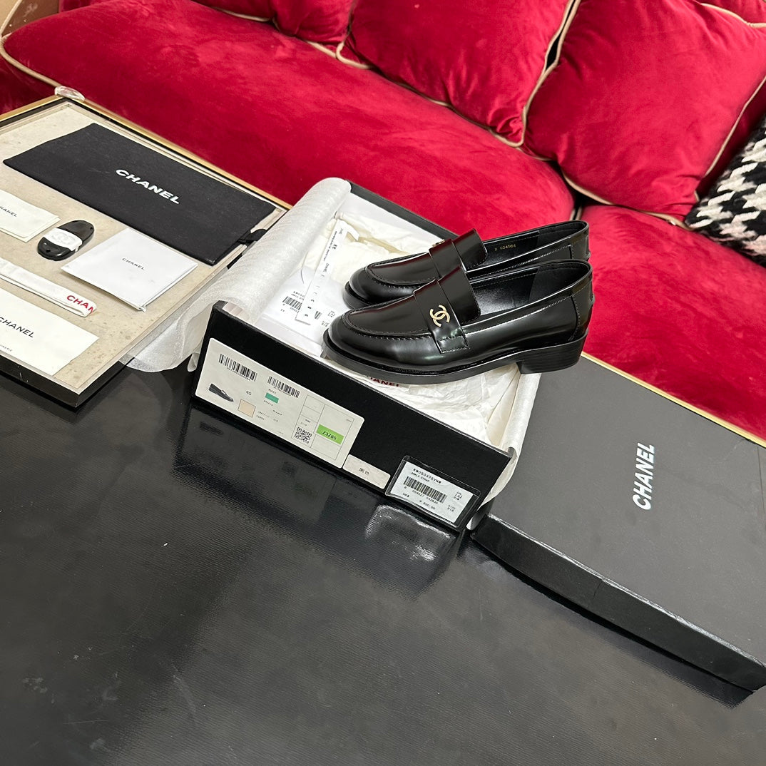 CC Moccasins Glossy Black Calfskin