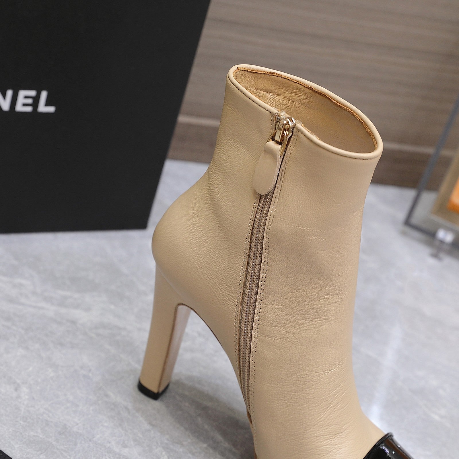CC Platform Ankle Boots 100mm Black Beige Lambskin 425877