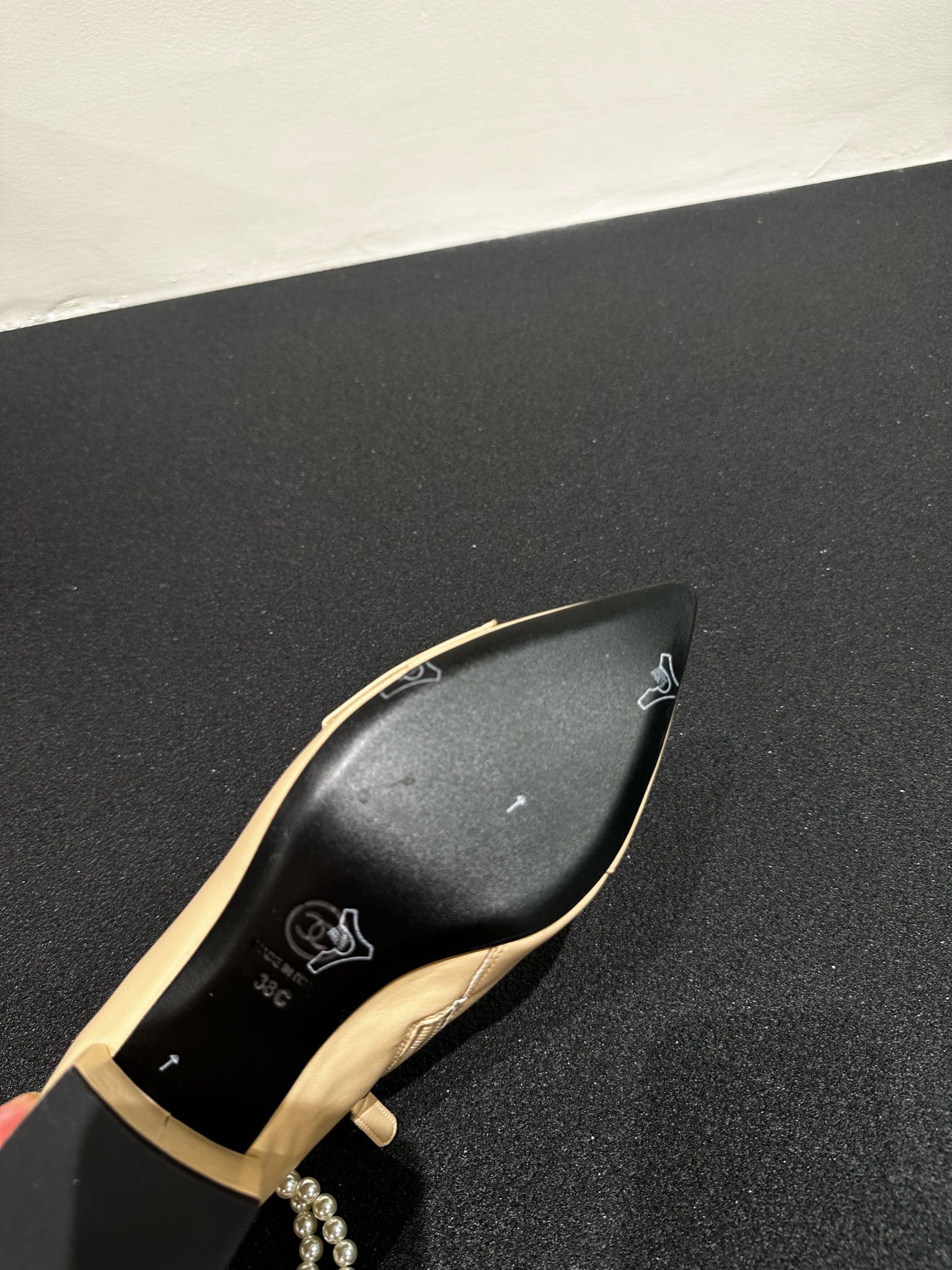 CC Pointed Toe High Heels Beige Bow Tie Cowhide