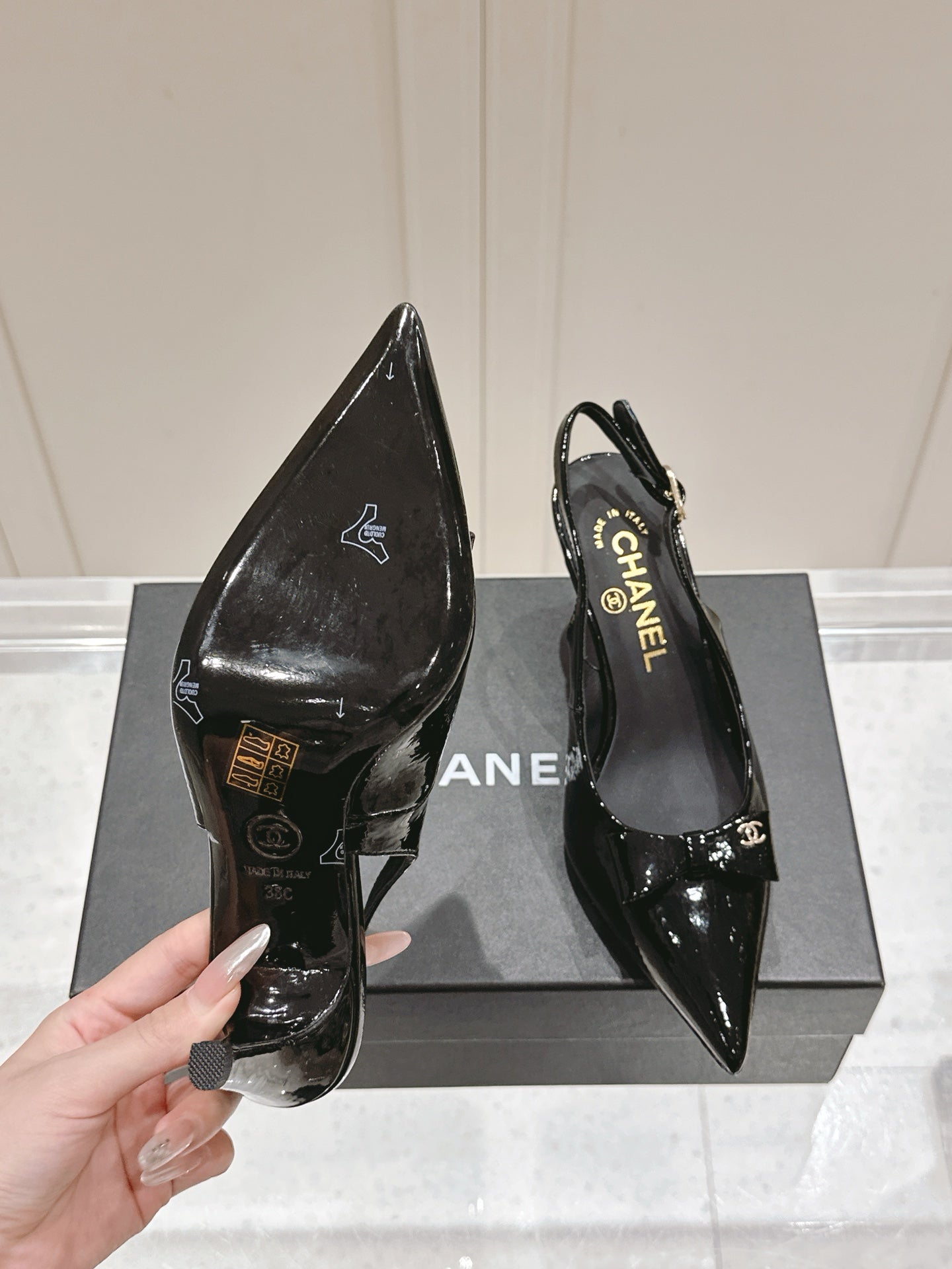Chanel 25A Slingback Black Patent Calfskin 393073