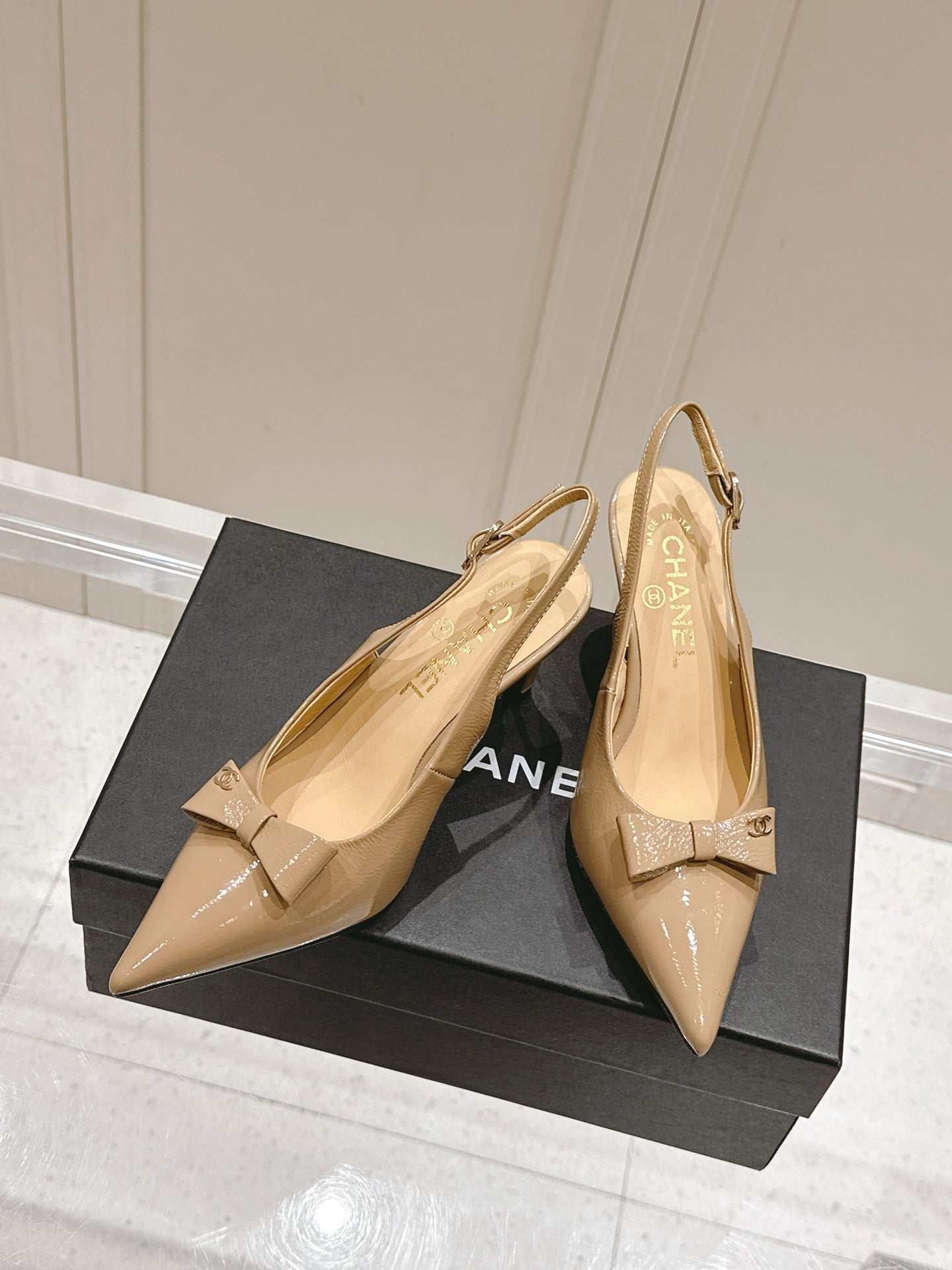 Chanel 25A Slingback Nude Patent Calfskin 393071