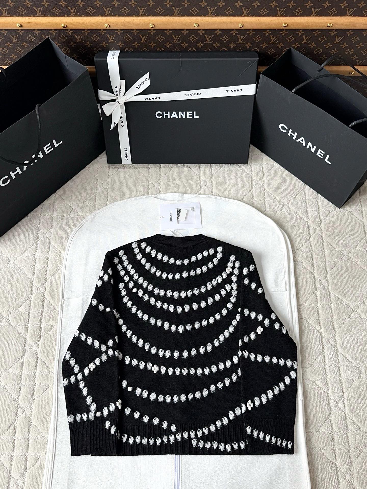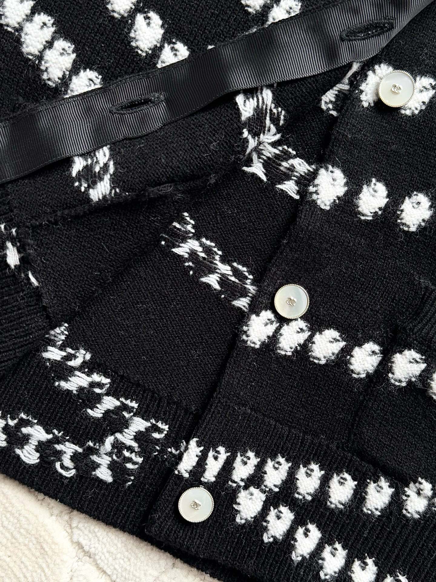 Chanel 25P Cardigan Black Mix White Cashmere 237301