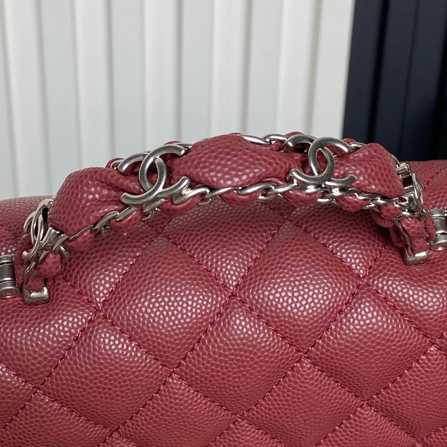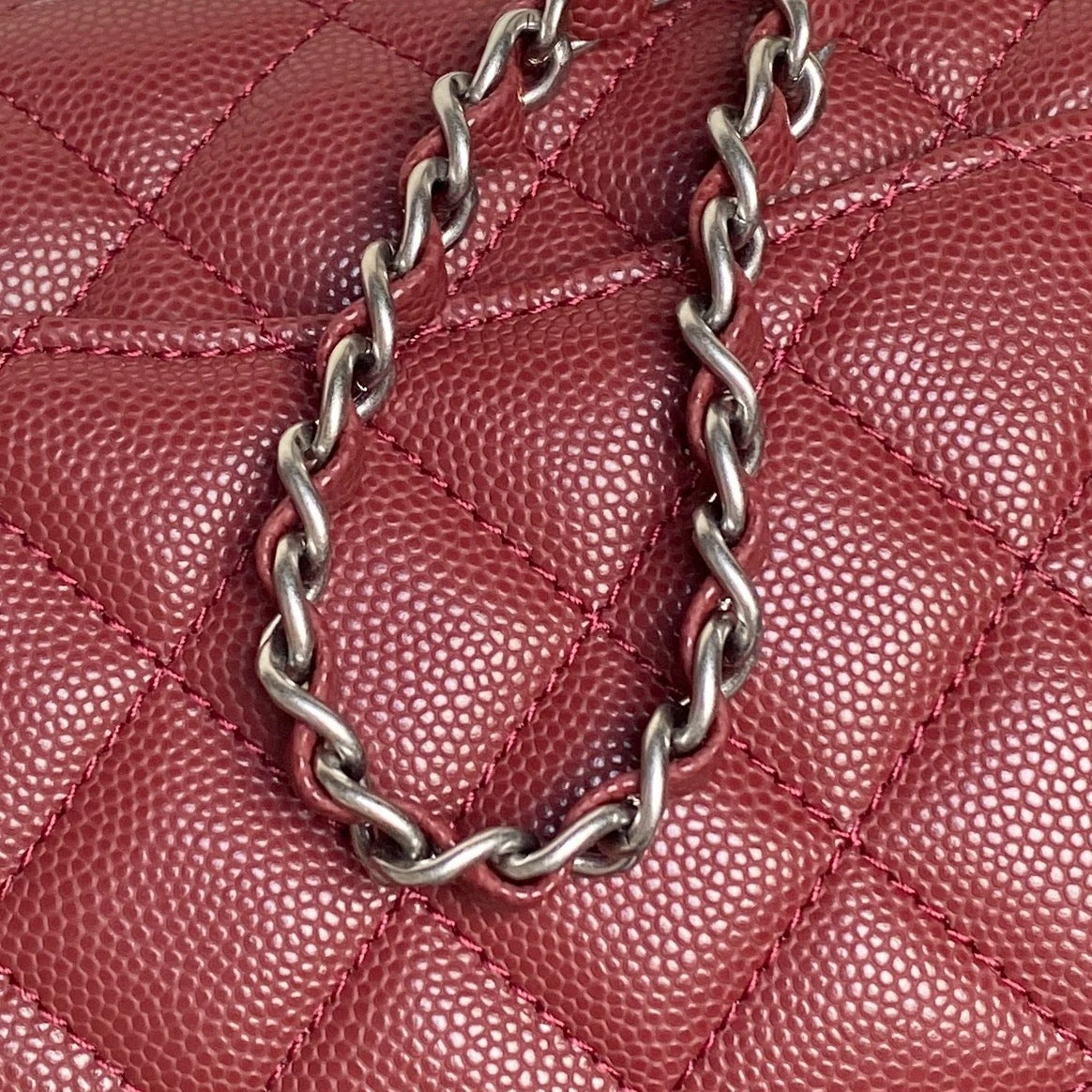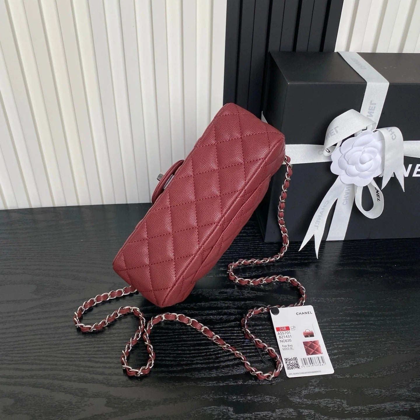 CHANEL 25S FLAP BAG 19 IN BURGUNDY CALFSKIN SILVER HARDWARE