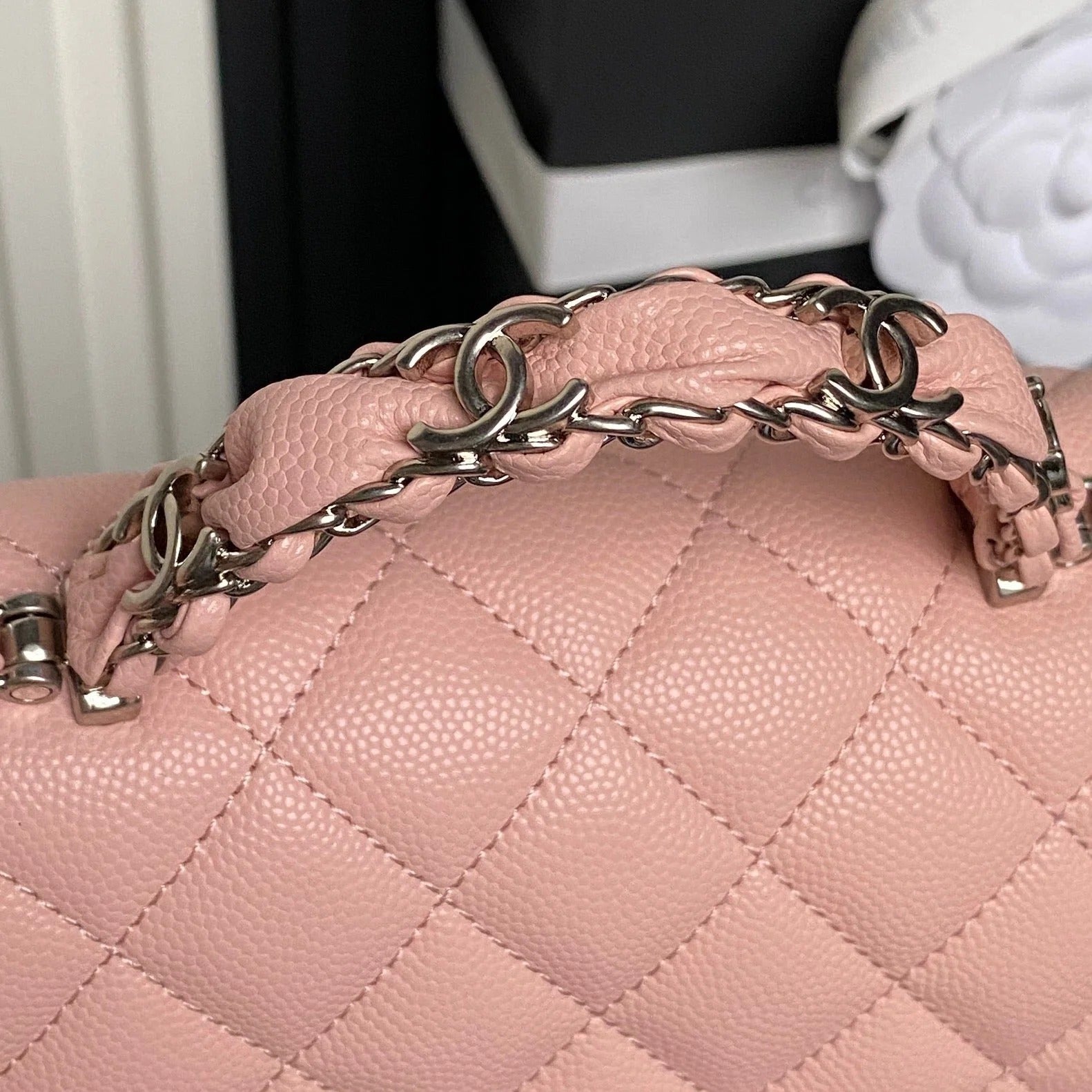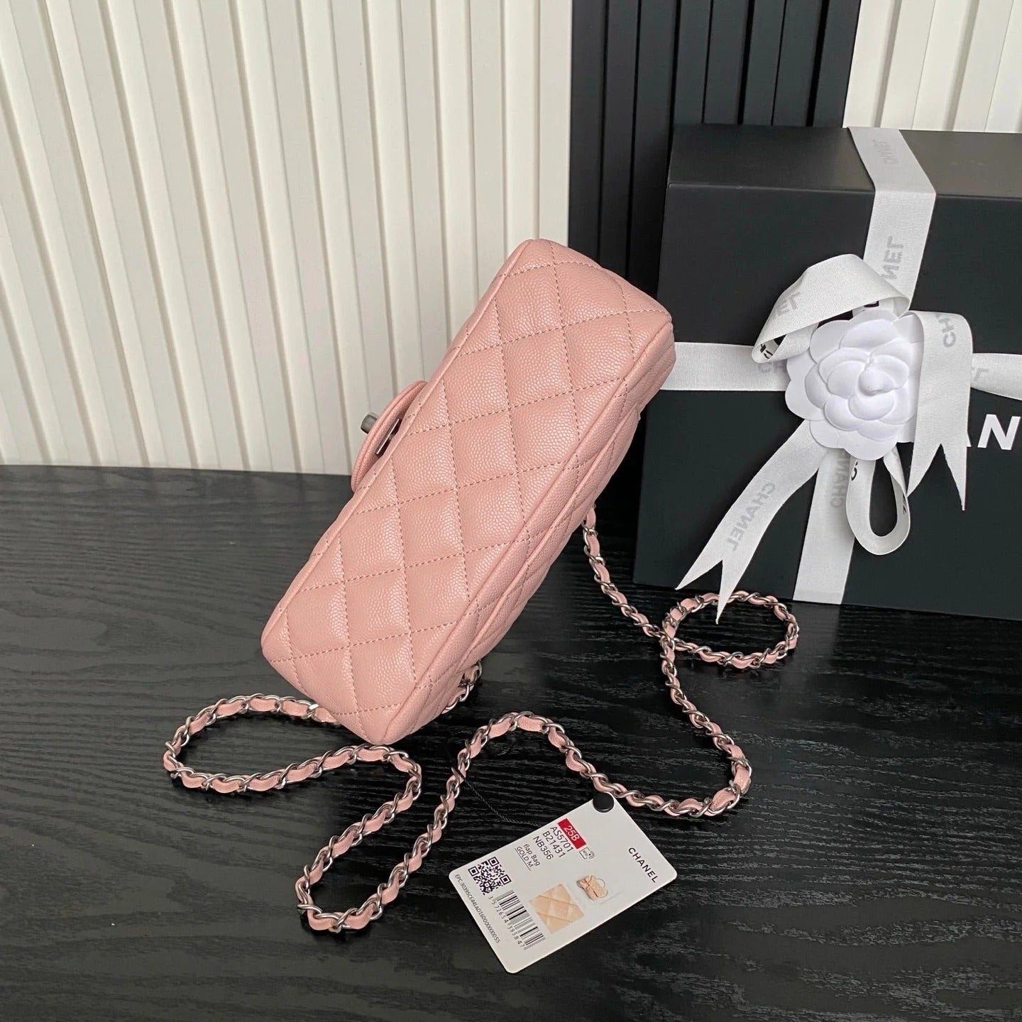 CHANEL 25S FLAP BAG 19 IN LIGHT PINK CALFSKIN SILVER HARDWARE