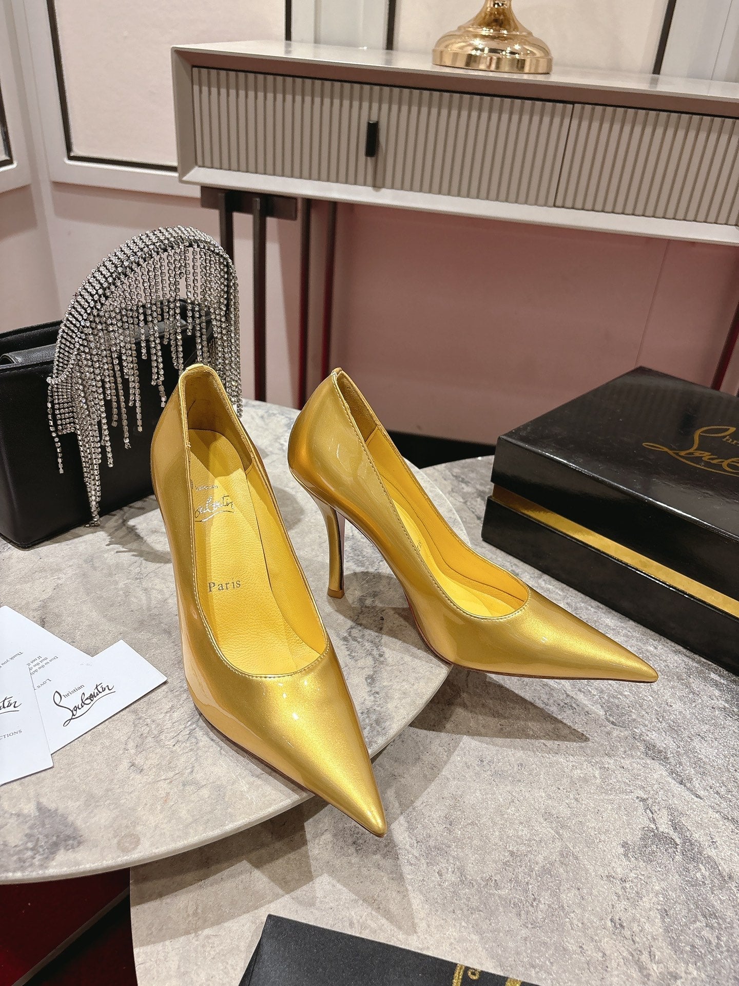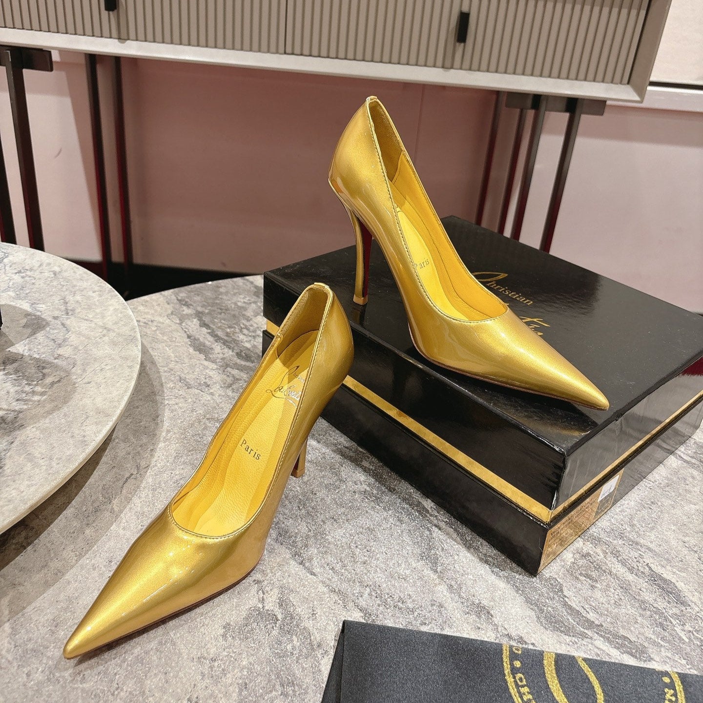 CL Kate Pumps 100mm Yellow Shiny Calfskin 345985