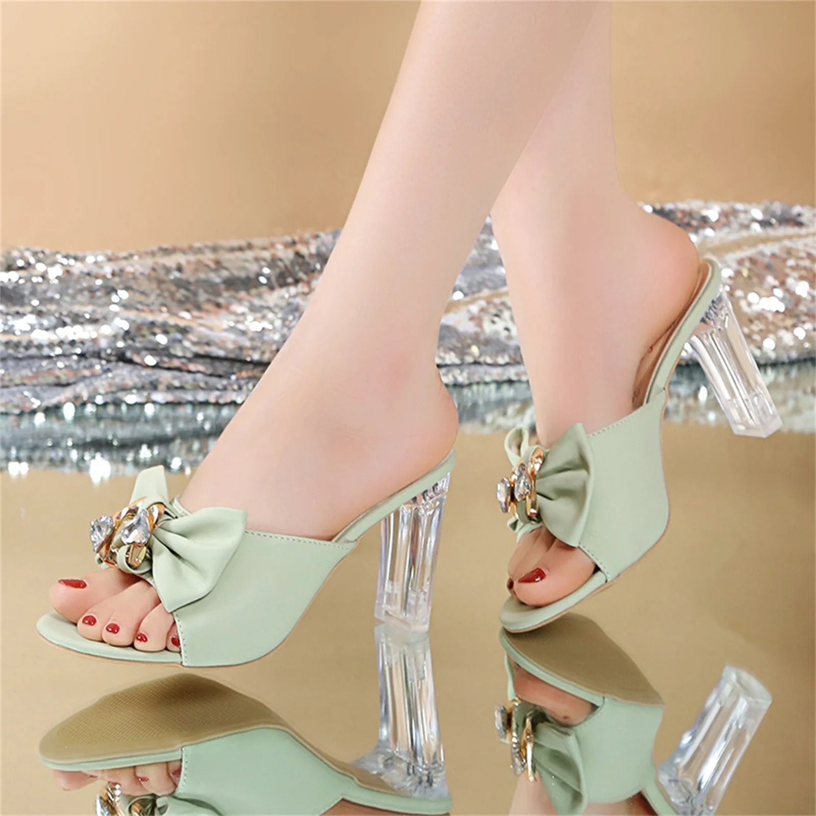 Crystal Bow Open Toe High Heel Slippers - Summer Fashion Sandals